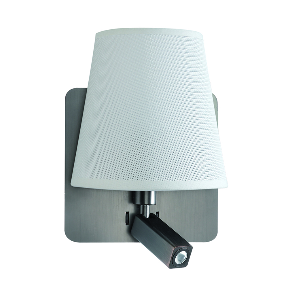 двумя источниками света: направленным спотом и классической лампой с абажуром.