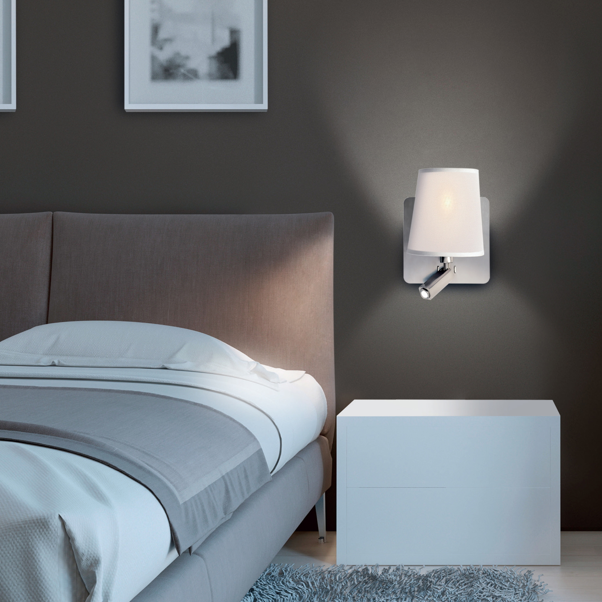 бокам от кровати, два светильника BAHIA могут служить как основным, так и