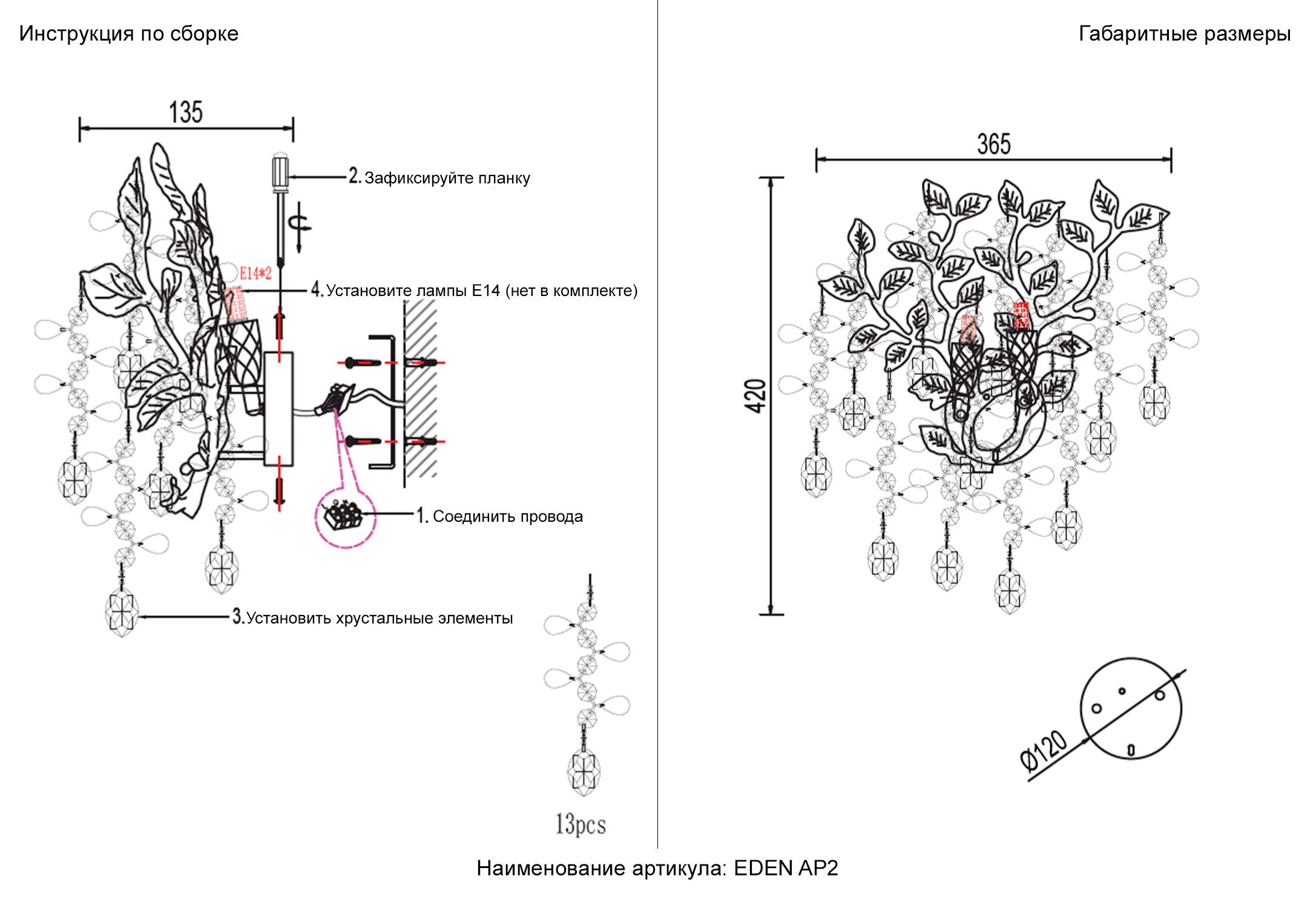 Прозрачные хрустальные элементы сочетаются с янтарными стеклянными каплями