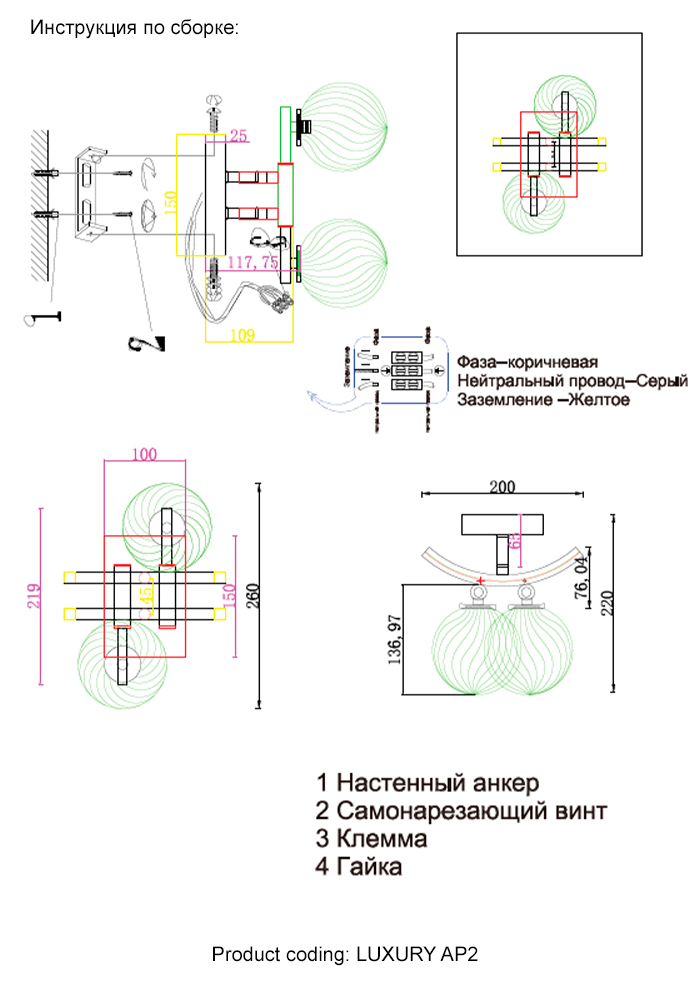 | Цвет абажура/плафона |