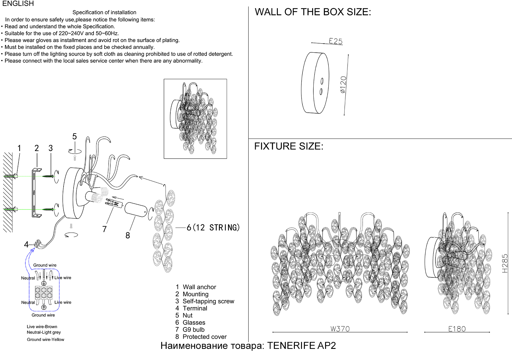 Бра Crystal Lux TENERIFE AP2