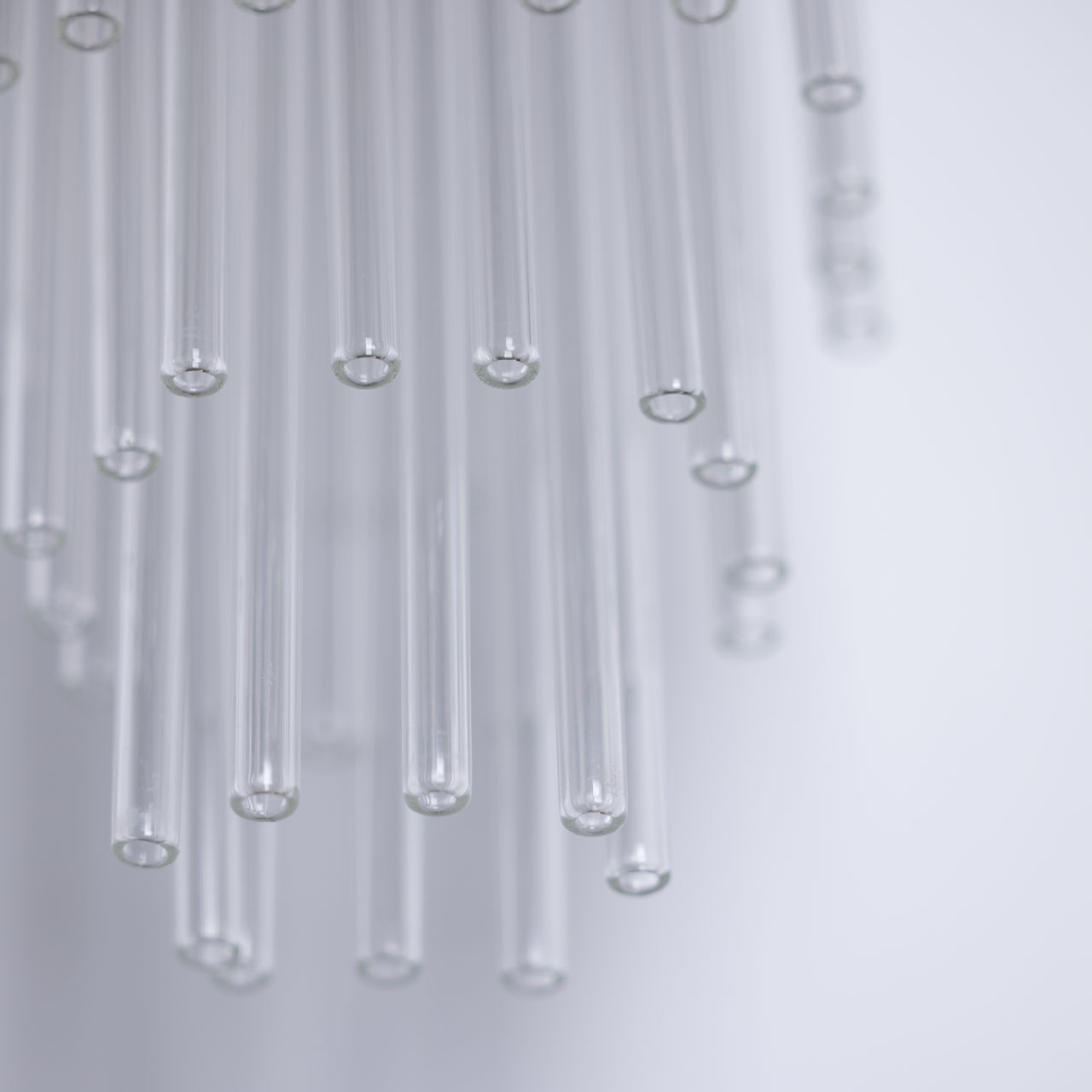 Металлическое основание настенного бра гальванизировано в цвет латуни. Светильник декорирован прозрачными стеклянными трубочками.