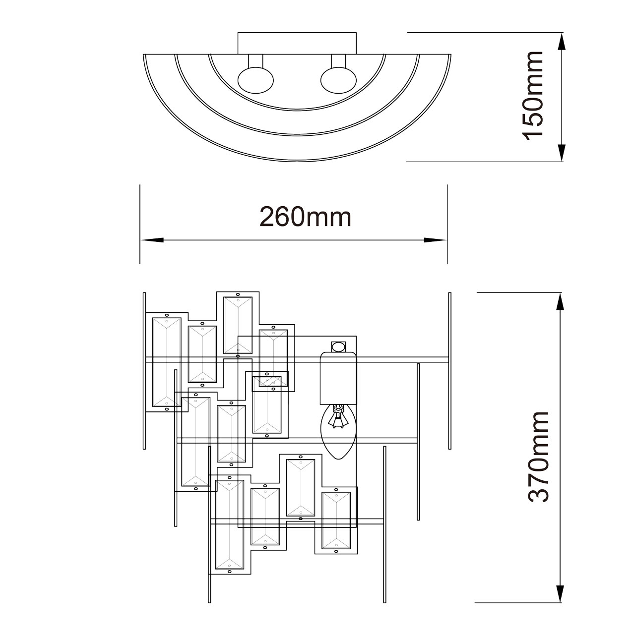 Основание бра выполнено из металла и окрашено по технологии двойного окрашивания, основной слой — серебро, декоративный слой — перламутровое золото.Декор: прозрачный хрусталь прямоугольной формы.
