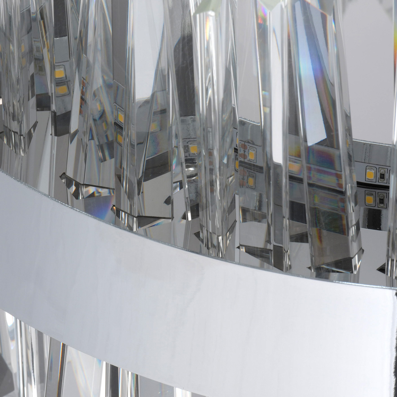Основание выполнено из нержавеющей стали отполированной до зеркального блеска.Декор — прозрачный хрусталь прямоугольной формы.