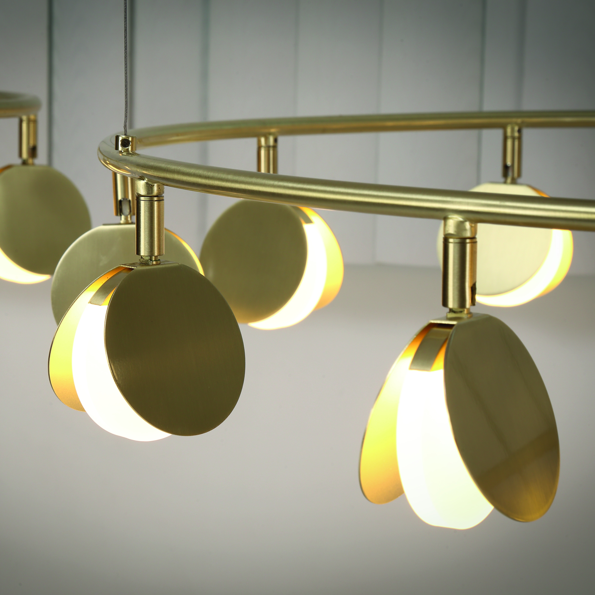 SHELL является крайне изящной коллекцией. Она несет в себе образы вдохновения дизайнера, напоминая форму раскрывающихся ракушек или порхание стаи мотыльков. Тонкие золотые пластины распахнулись, чтобы выпустить мягкий светодиодный свет из основания формы. Множество маленьких ракушек закреплено на широком обруче. Он словно парит в воздухе, благодаря едва заметной системе подвески.