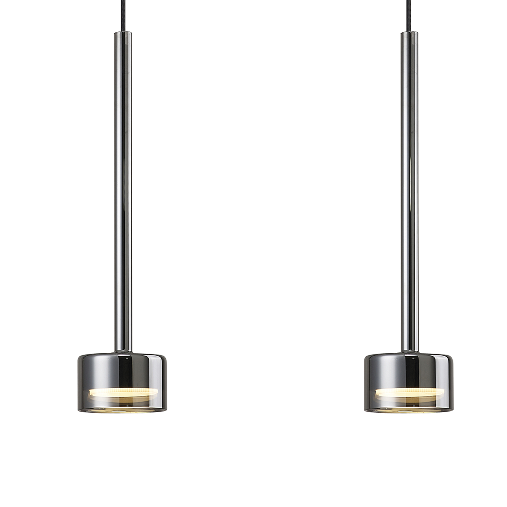 Вариации подвесных светильников Tonic не оставят равнодушным никого. Интерьерные пространства с этой элегантной коллекцией выглядят всегда актуальными и изящными. Разнообразие по формам всегда черных платформ также является предметом дизайна. Количество подвесов может быть от одного до четырнадцати, в зависимости от объема пространства, где они висят. Лаконично законченные вытянутые цилиндрические трубки, в которые спрятана часть проводов и двойные цилиндрические плафоны придают также утонченную статичность образу. А градация цвета от дымчатого до бронзового стекла позволяет вписывать светильник в любые интерьеры как теплого, так и холодного колорита. Ими могут быть пространства гостиных, спален, прихожих, лестничные холлы, кухни-столовые, барные стойки, зоны рецепции в общественных интерьерах и залы ресторанов.