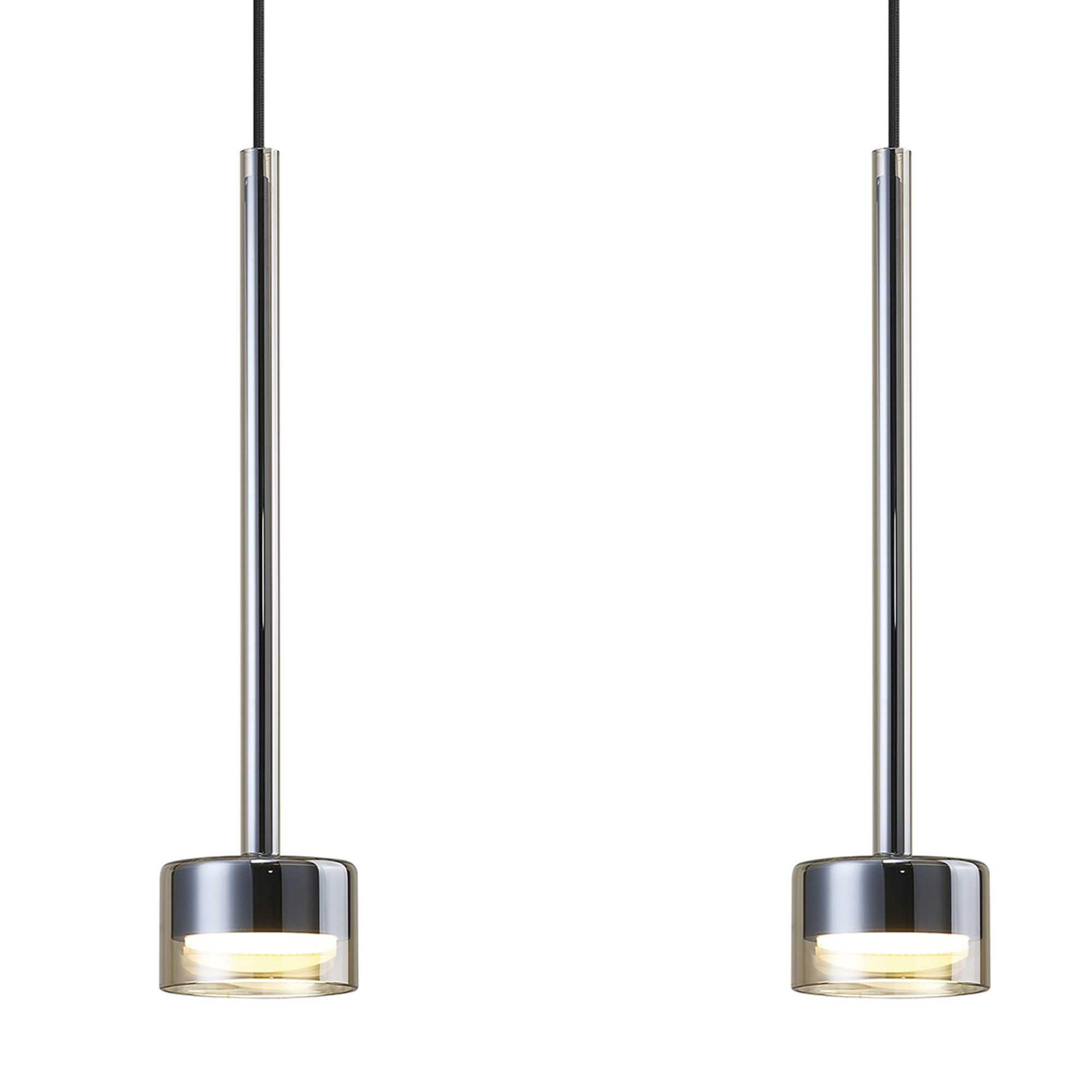Вариации подвесных светильников Tonic не оставят равнодушным никого. Интерьерные пространства с этой элегантной коллекцией выглядят всегда актуальными и изящными. Разнообразие по формам всегда черных платформ также является предметом дизайна. Количество подвесов может быть от одного до четырнадцати, в зависимости от объема пространства, где они висят. Лаконично законченные вытянутые цилиндрические трубки, в которые спрятана часть проводов и двойные цилиндрические плафоны придают также утонченную статичность образу. А градация цвета от дымчатого до бронзового стекла позволяет вписывать светильник в любые интерьеры как теплого, так и холодного колорита. Ими могут быть пространства гостиных, спален, прихожих, лестничные холлы, кухни-столовые, барные стойки, зоны рецепции в общественных интерьерах и залы ресторанов.