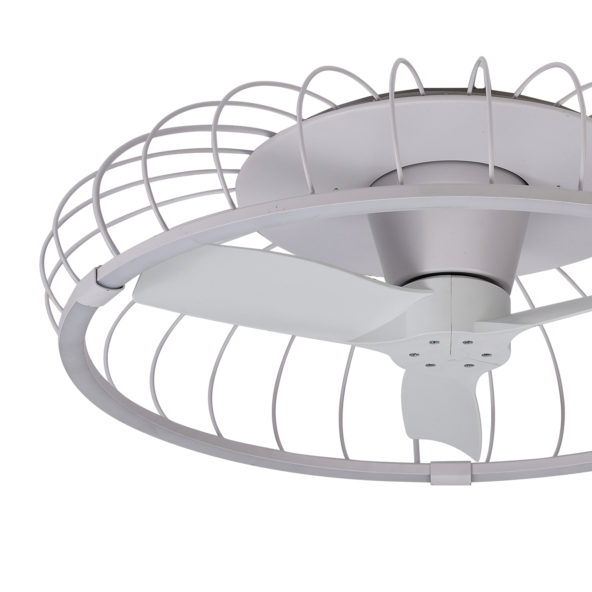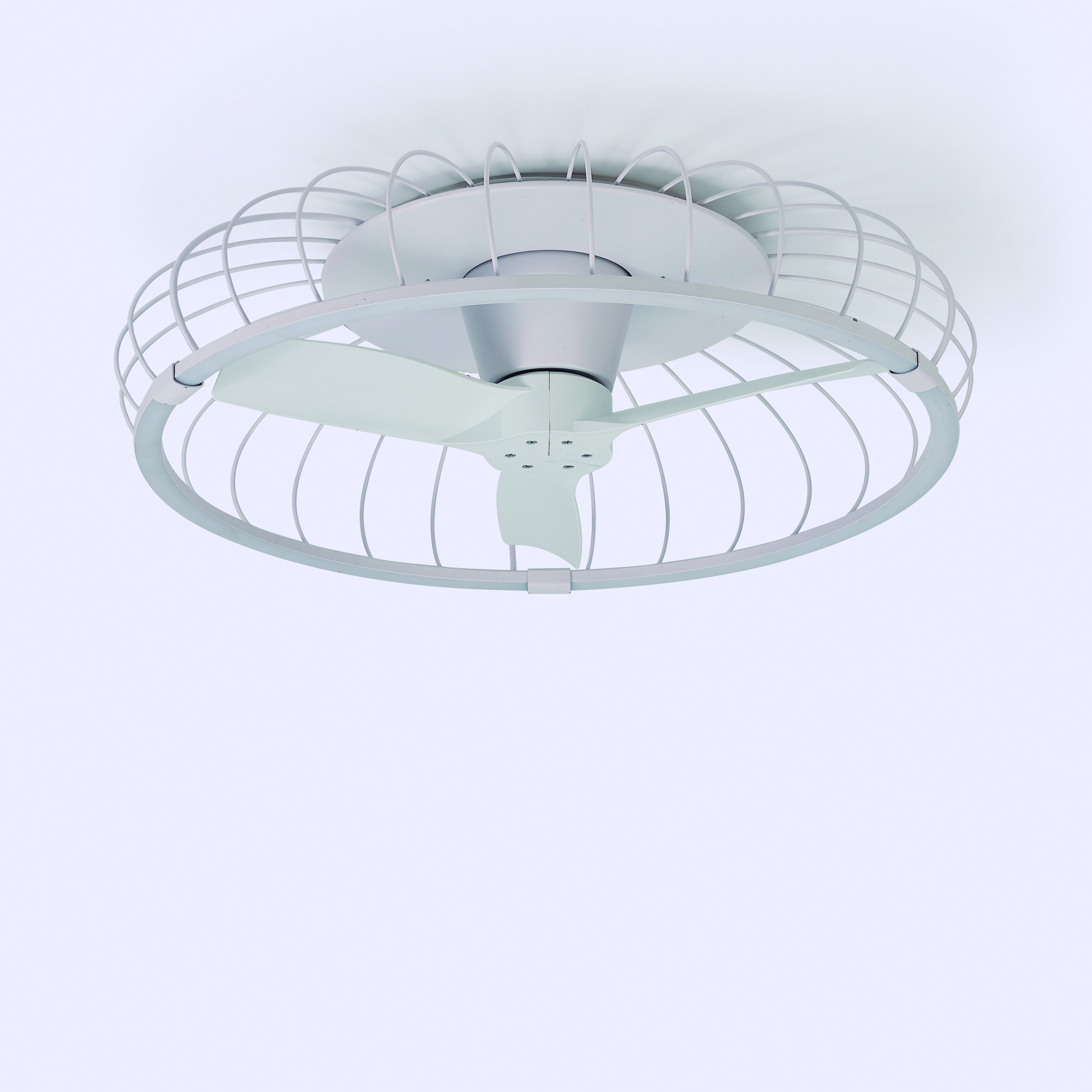 Вентилятором и встроенными светодиодами можно управлять с помощью пульта дистанционного управления, который входит в комплект или с помощью мобильного приложения. Металлический каркас представлен в белой и