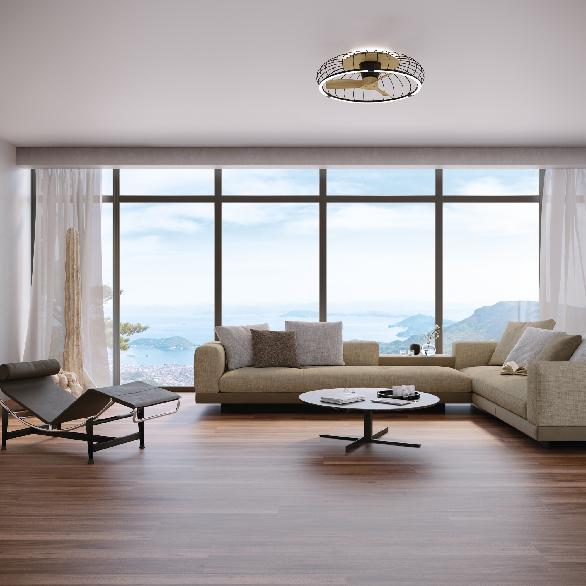 В коллекции NATURE Mantra представляет новое дополнение к своей оригинальной концепции симбиоза вентиляции и освещения. Природа и инновация дополняют друг друга в дизайне Хосе Баллестера, который сочетает деревянный вентилятор со светодиодным кольцом. Вентилятор оснащен открытым металлическим куполом в форме клетки, который обеспечивает более широкий охват освещения и воздушного