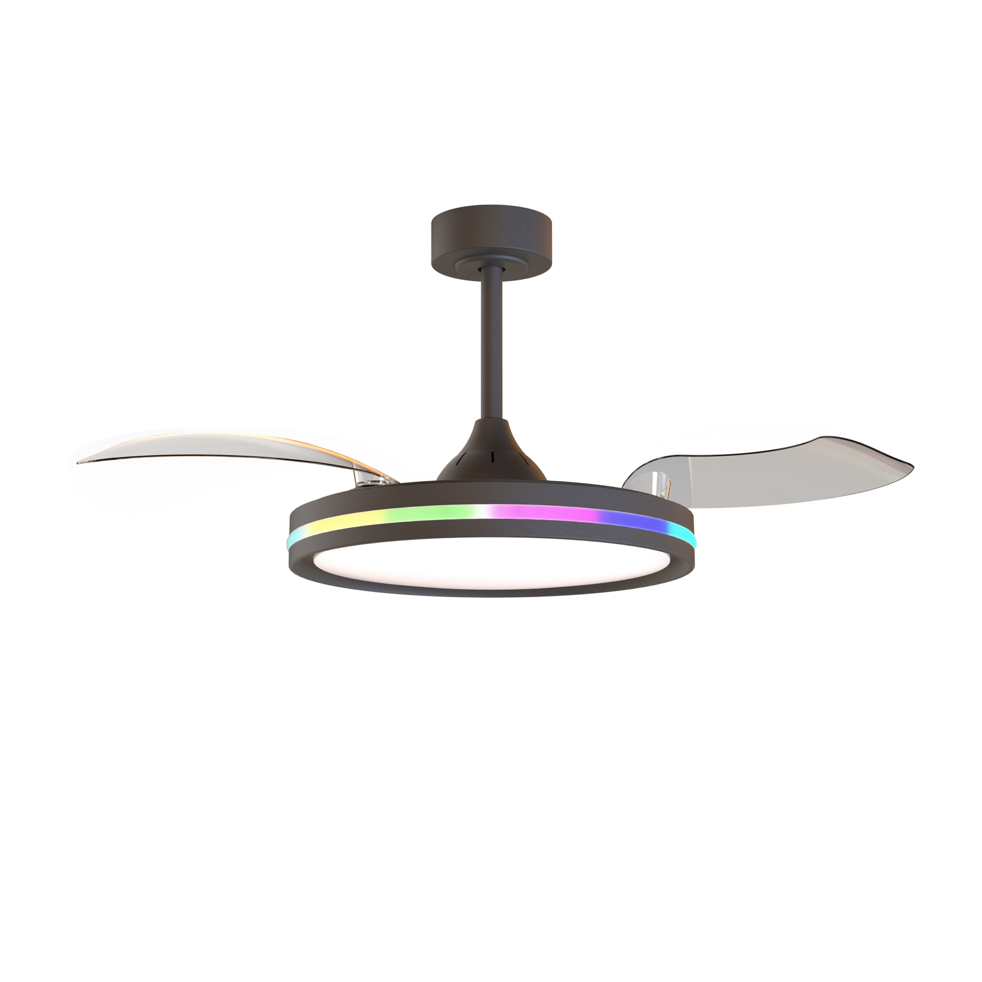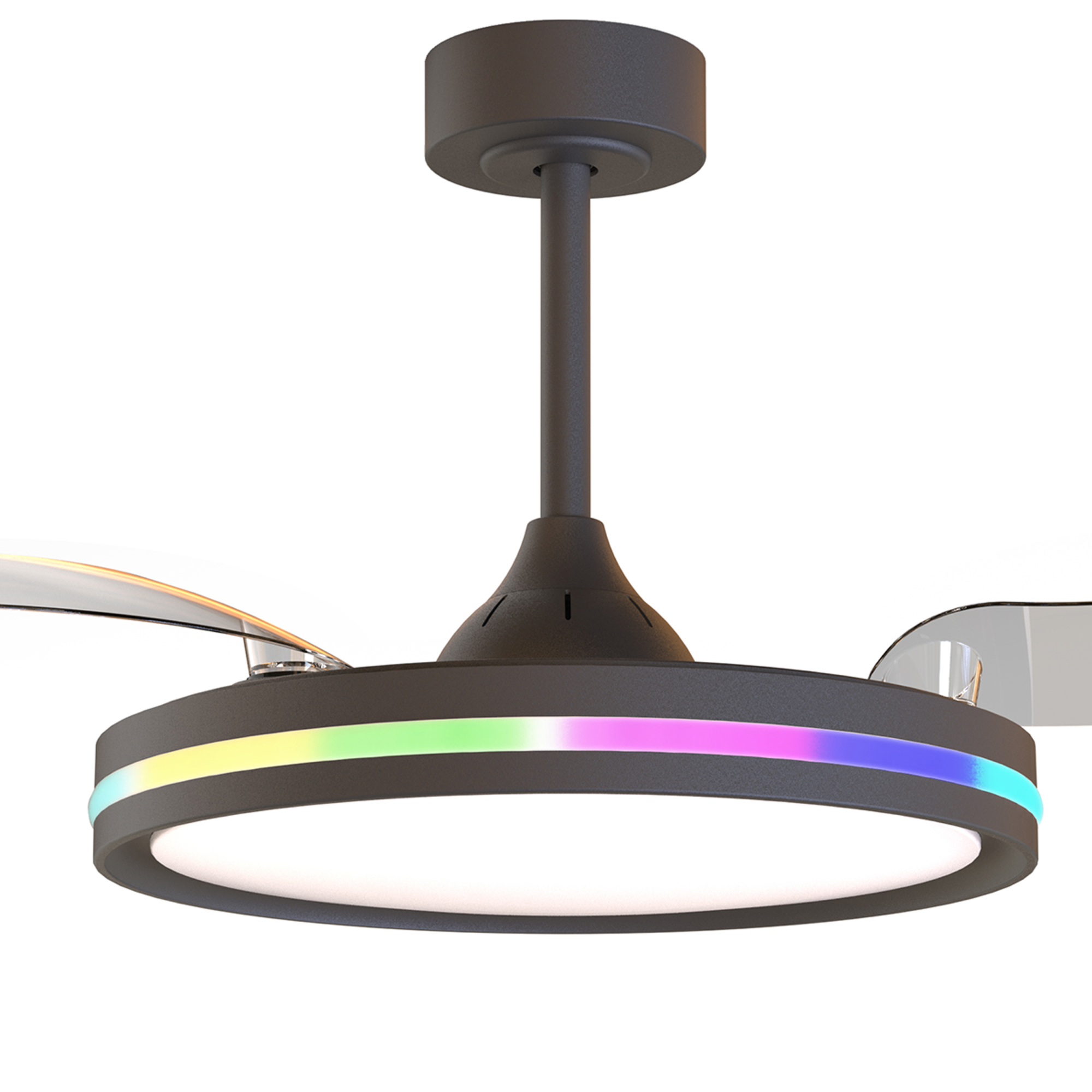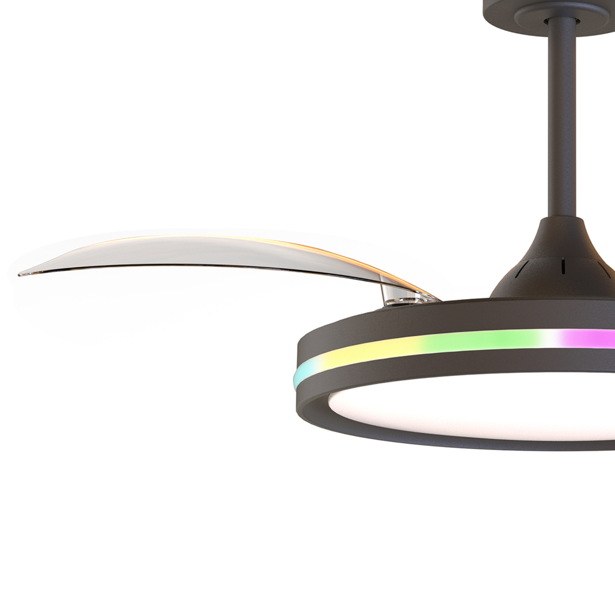 RAFAGA — это коллекция универсальных круглых светодиодных светильников с функцией дистанционного управления и регулировкой высоты. Главной особенностью данной коллекции являются трансформирующиеся лопасти вентилятора, которые раскрываются над светильником. С помощью пульта пользователь может управлять яркостью и цветовой температурой освещения, скоростью вращения вентилятора, а также открывать или закрывать лопасти. Каждый светильник коллекции способен менять свою цветовую температуру от 3000K до 6500К. Такая свобода в использовании дает возможность менять настроение и образ комнаты с помощью пары движений. Светильники RAFAGA станут идеальным световым решением для просторных комнат, которые служат для ряда различных функций, например, как рабочее пространство днем и зона отдыха вечером. Лаконичный дизайн коллекции впишется в широкий спектр интерьеров от кухни до офиса. Светильники доступны в двух цветовых вариантах: белый и черный. Коллекция оснащена RGB подсветкой по периметру светильника.