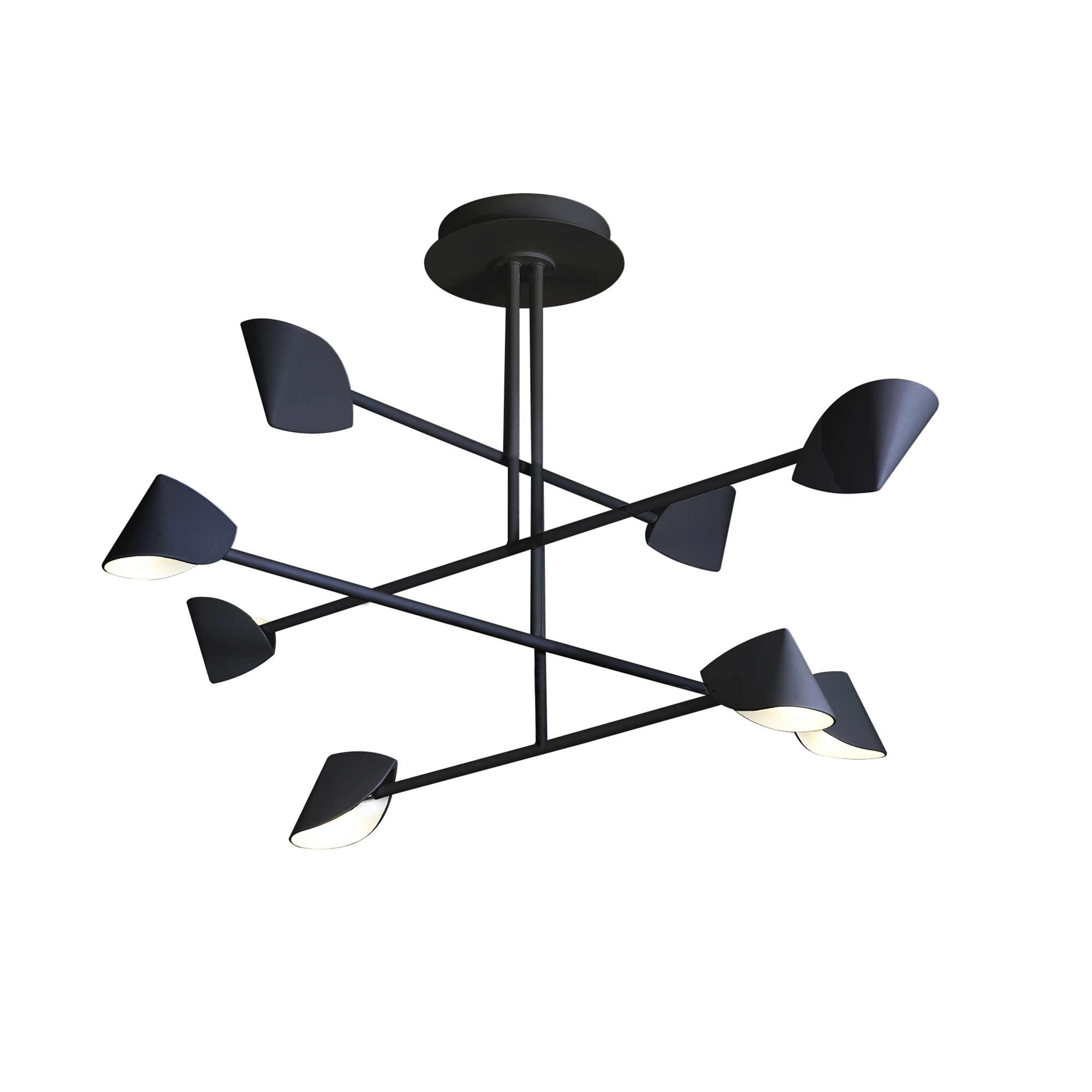Дизайн коллекции CAPUCCINA вдохновлен кинетическими скульптурами американского художника Александра Кальдера. Уникальность коллекции заключена в балансе между спокойствием и динамичностью композиции светильника. Еще одна оригинальная особенность CAPUCCINA проявляется в форме неправильного конуса, образованного складками металлических пластин. Подвесные и потолочные светильники имеют ярусы, которые можно регулировать, подстраивая светильник под нужды индивидуального интерьера. Светильники CAPUCCINA предназначены для создания ощущения покоя и размеренности в пространстве. Подвесной светильник коллекции может использоваться в качестве главного источника света для гостиной, а настольные лампы, бра и торшеры помогут разделить интерьер на зоны для чтения, работы и отдыха. Ассортимент коллекции CAPUCCINA включает настенные, настольные и напольные светильники. Каждый предмет доступен в черном и белом цвете со светодиодами теплого оттенка.
