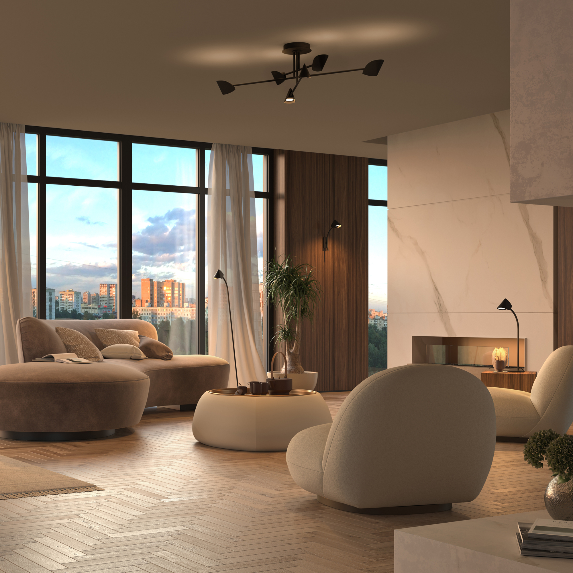 Дизайн коллекции CAPUCCINA вдохновлен кинетическими скульптурами американского художника Александра Кальдера. Уникальность коллекции заключена в балансе между спокойствием и динамичностью композиции светильника. Еще одна оригинальная особенность CAPUCCINA проявляется в форме неправильного конуса, образованного складками металлических пластин. Подвесные и потолочные светильники имеют ярусы, которые можно регулировать, подстраивая светильник под нужды индивидуального интерьера. Светильники CAPUCCINA предназначены для создания ощущения покоя и размеренности в пространстве. Подвесной светильник коллекции может использоваться в качестве главного источника света для гостиной, а настольные лампы, бра и торшеры помогут разделить интерьер на зоны для чтения, работы и отдыха. Ассортимент коллекции CAPUCCINA включает настенные, настольные и напольные светильники. Каждый предмет доступен в черном и белом цвете со светодиодами теплого оттенка.