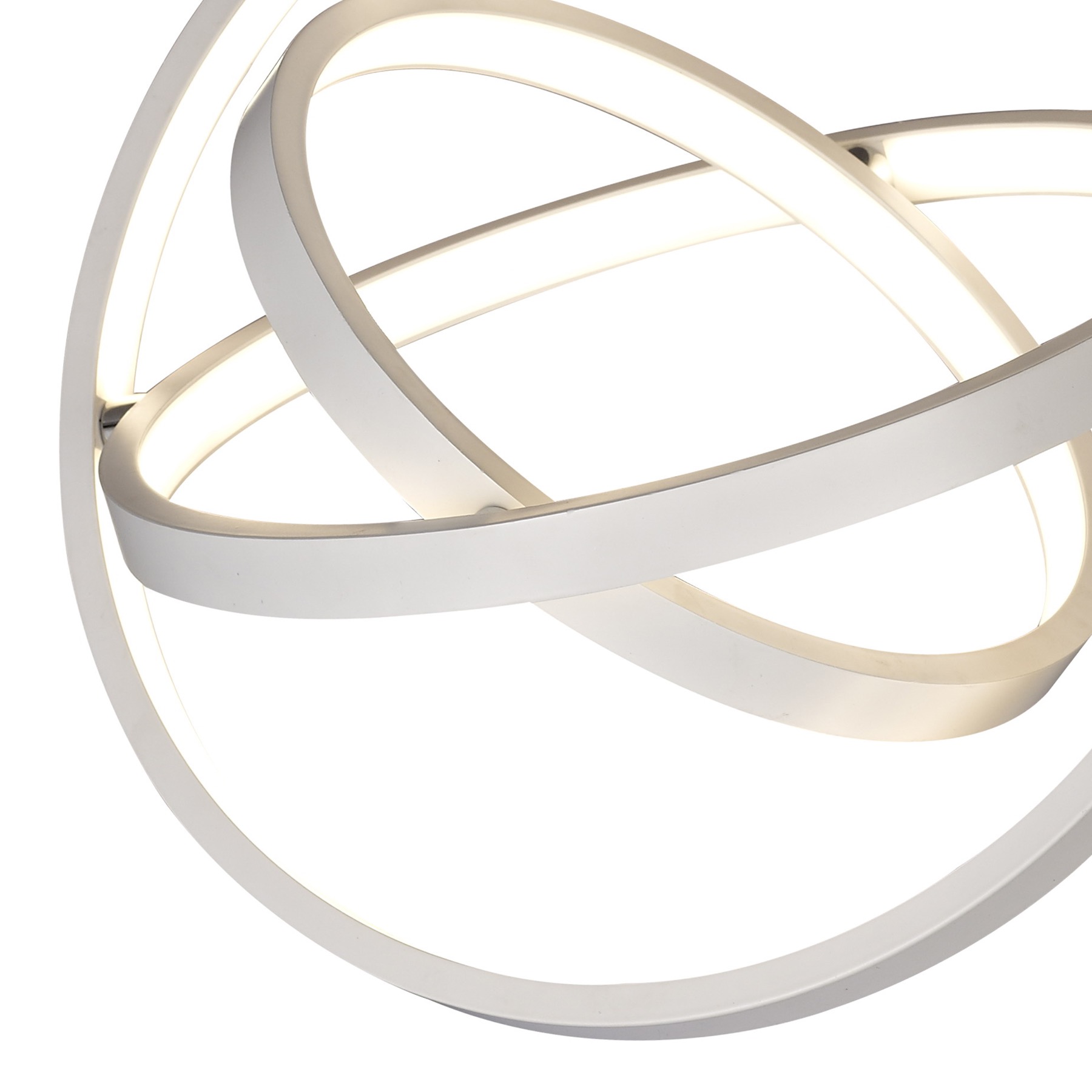 Встроенные светодиоды размещены в акриловом диффузоре внутри каждого кольца, образуя световые обручи и придавая образ космичности и инновации. Регулируемые подвесные светильники доступны в трех размерах. Коллекция также предлагает фиксированный потолочный светильник и настольную лампу.