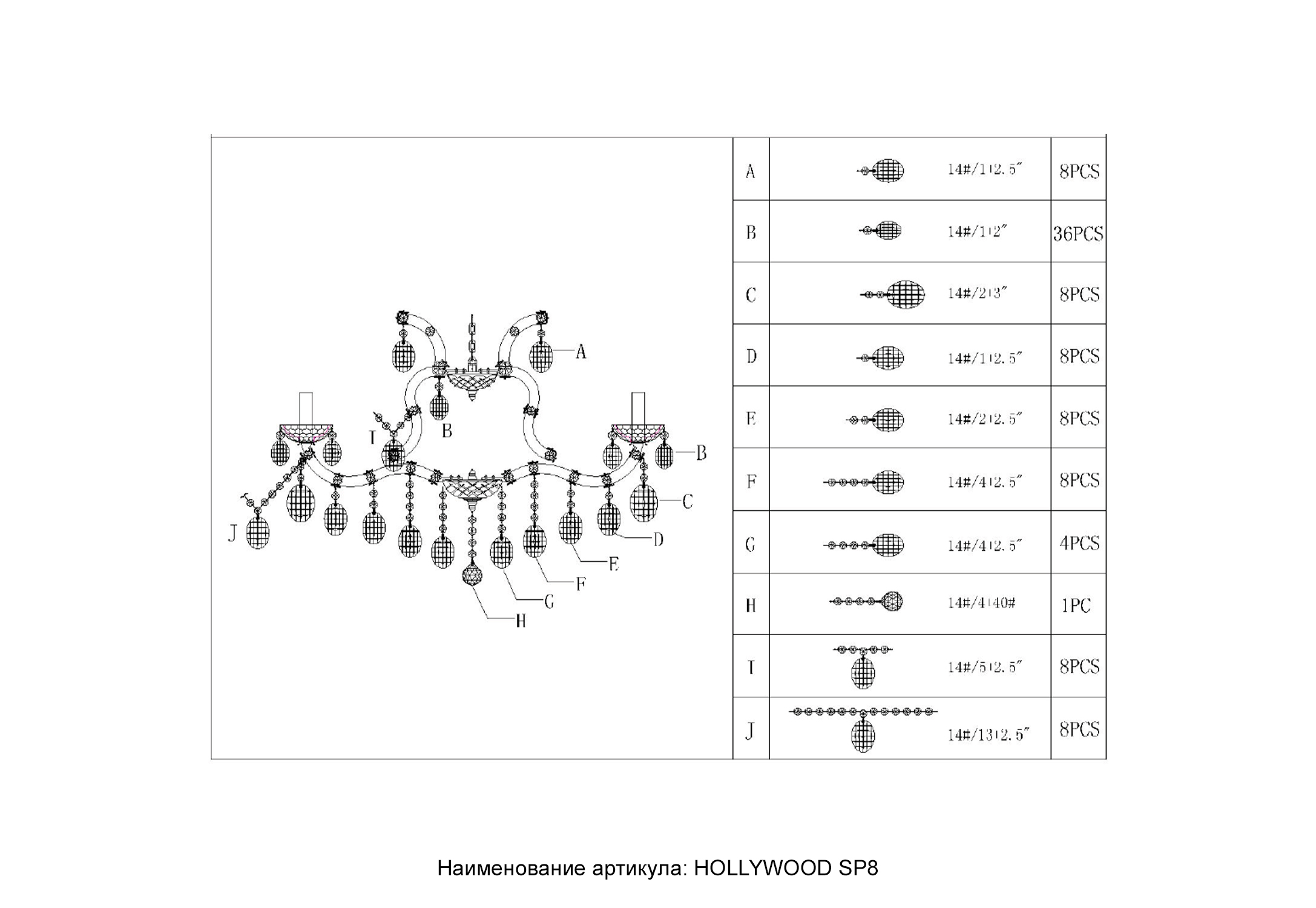 Люстра Crystal Lux HOLLYWOOD SP8 CHROME