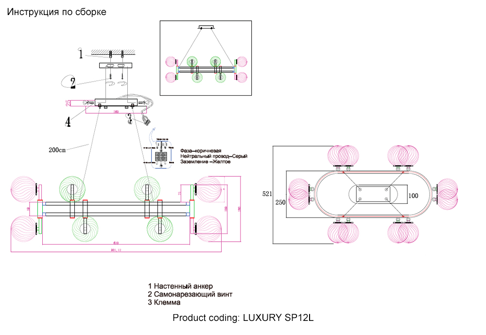 подвесных светильников и бра