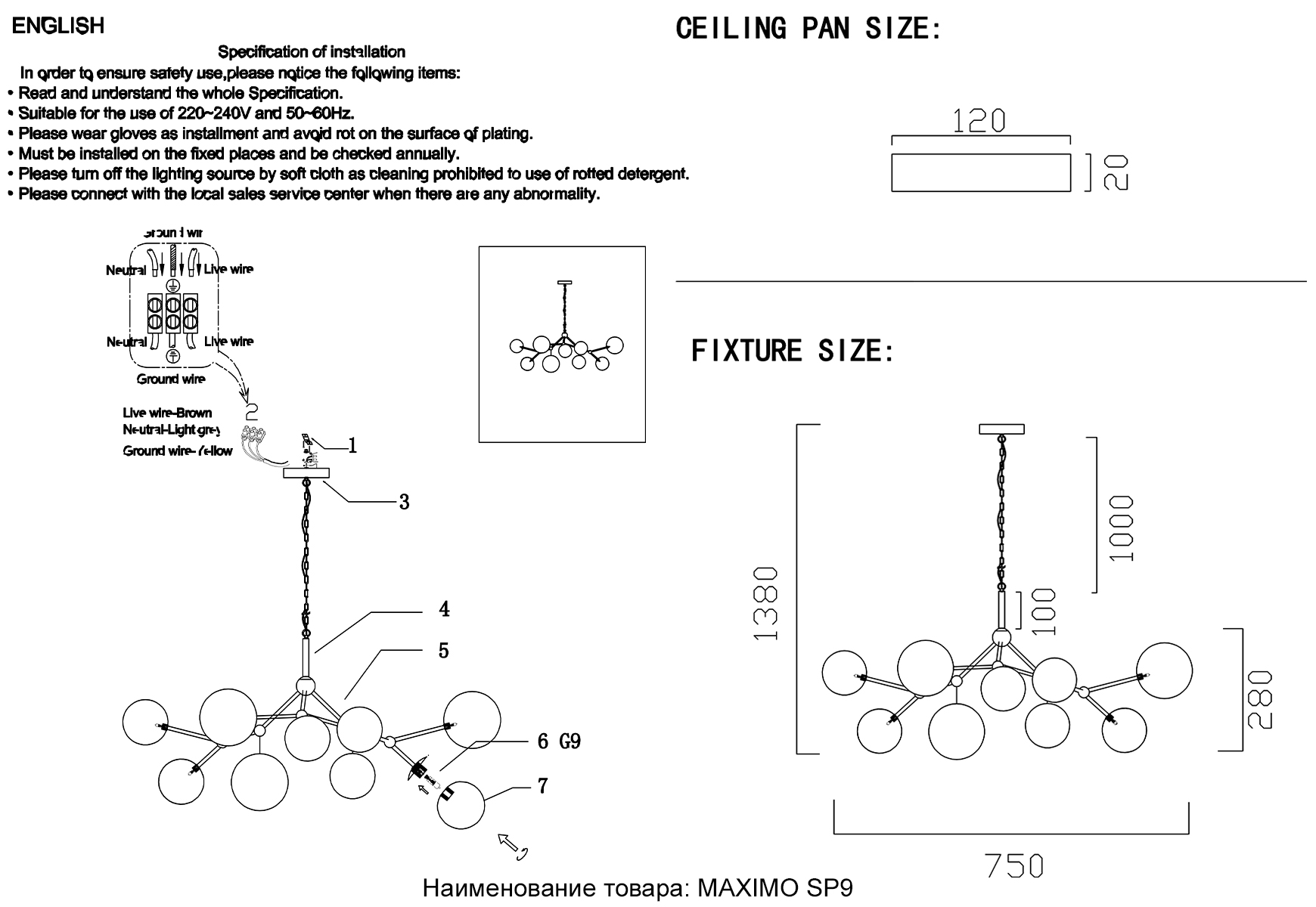 Люстра Crystal Lux MAXIMO SP9 BRONZE