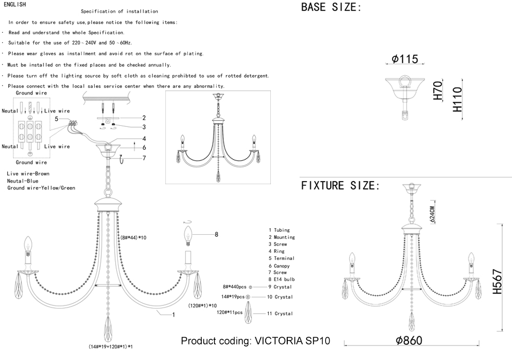 Люстра Crystal Lux VICTORIA SP10 GOLD/AMBER