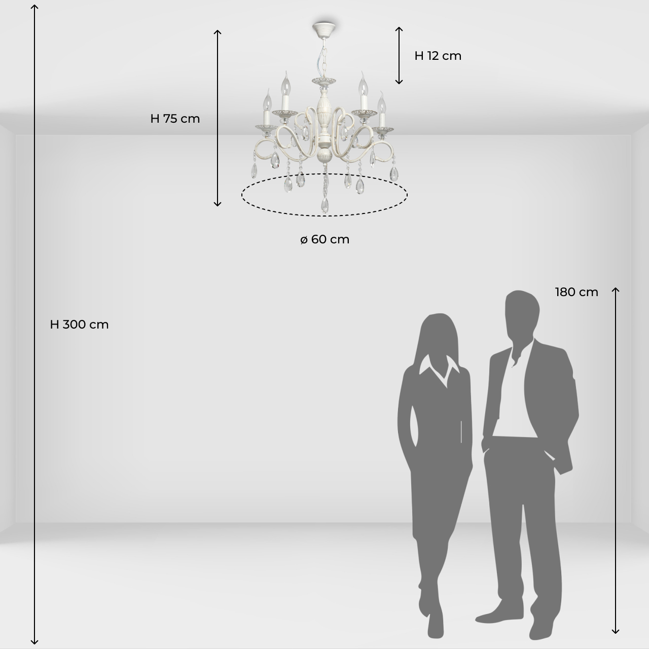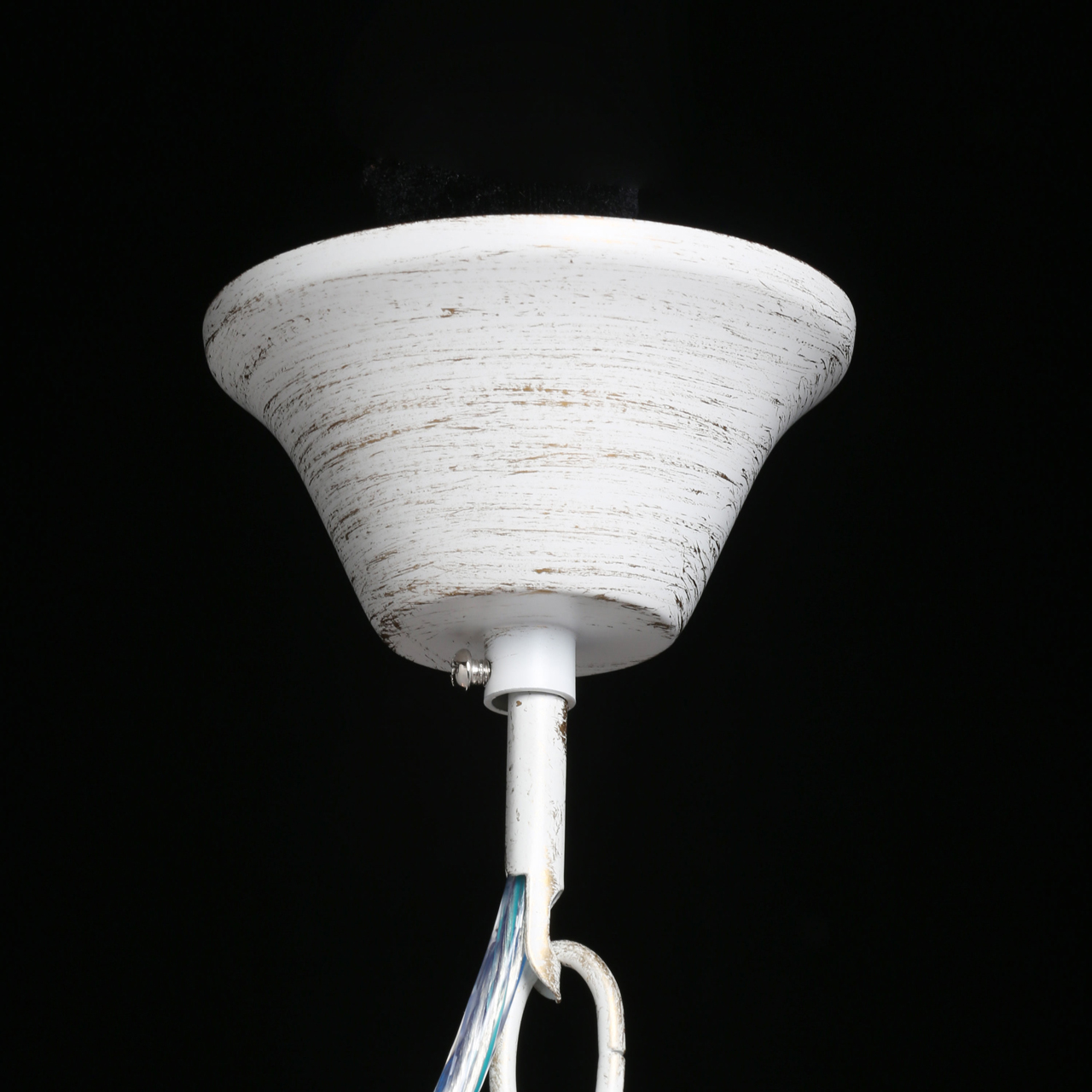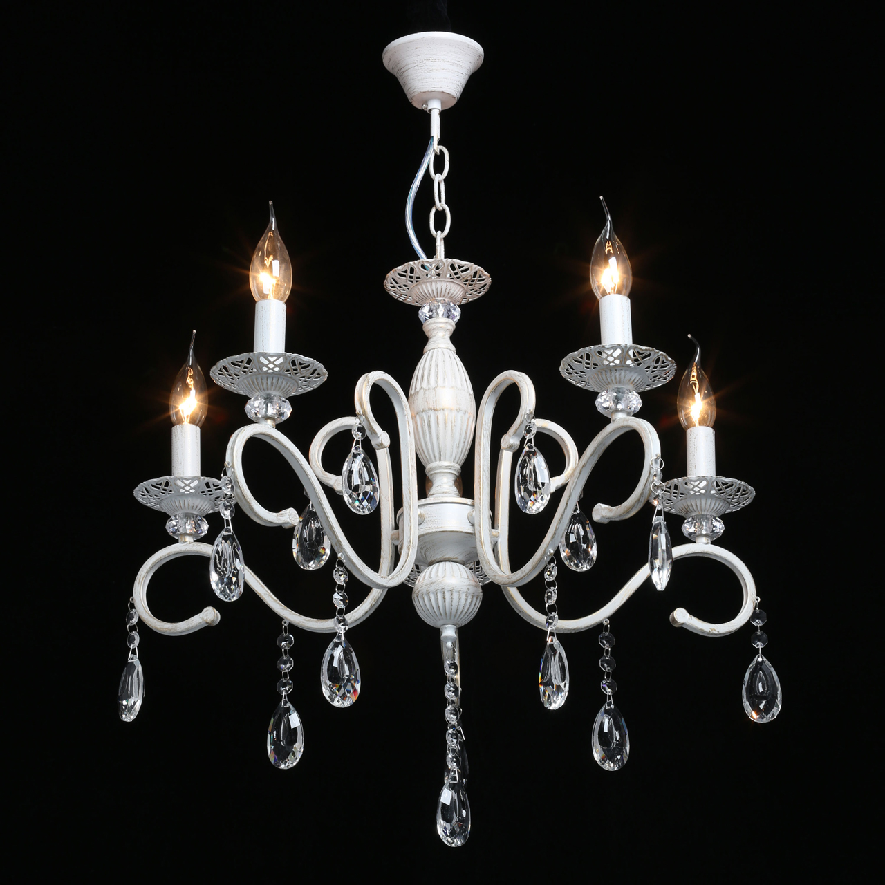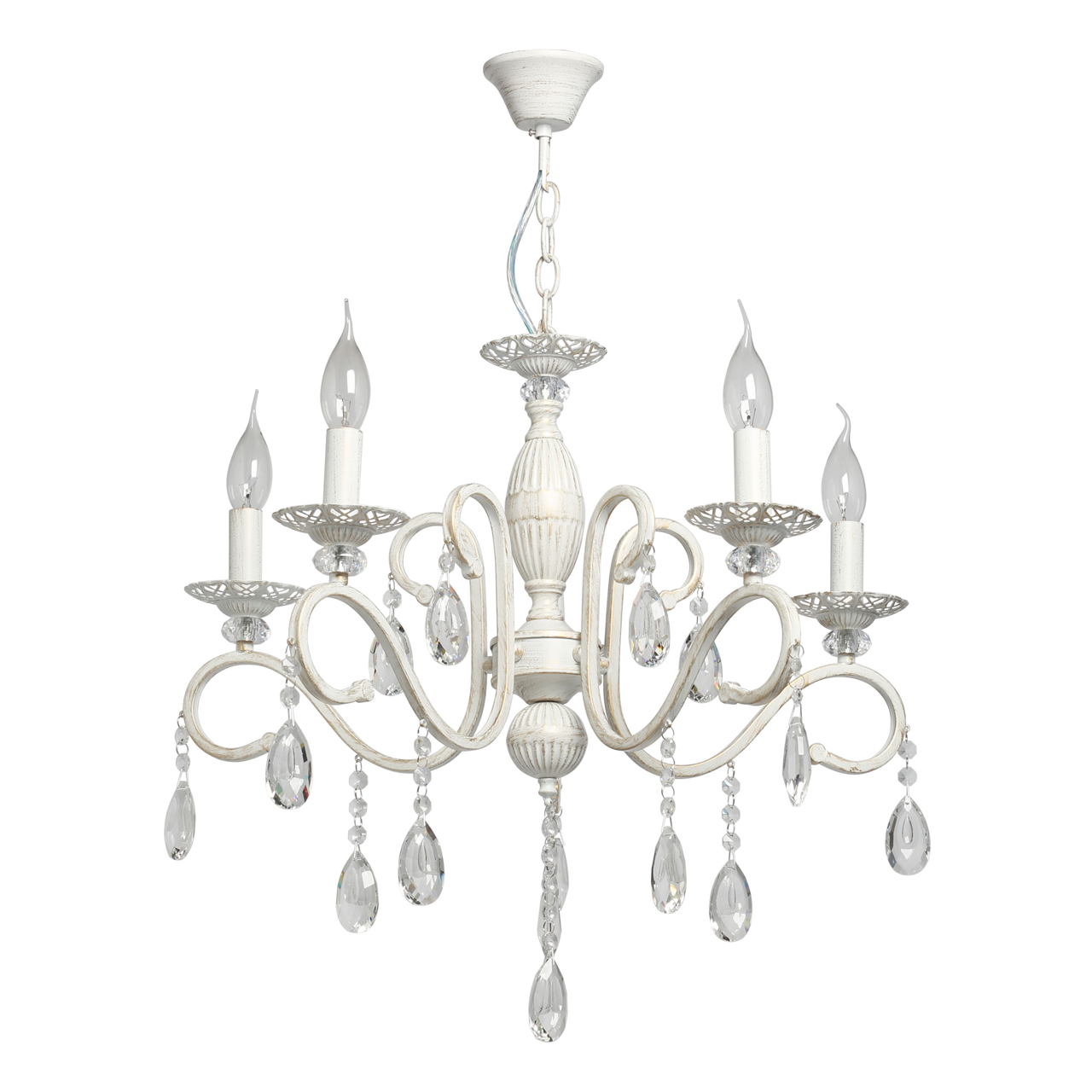 Основание светильника выполнено из металла и обработано по технологии хай-лайт, где основной слой белого цвета, а декоративный слой золотого цвета. Светильник декорирован прозрачным хрусталем. Под декоративными розетками декор из прозрачного акрила.