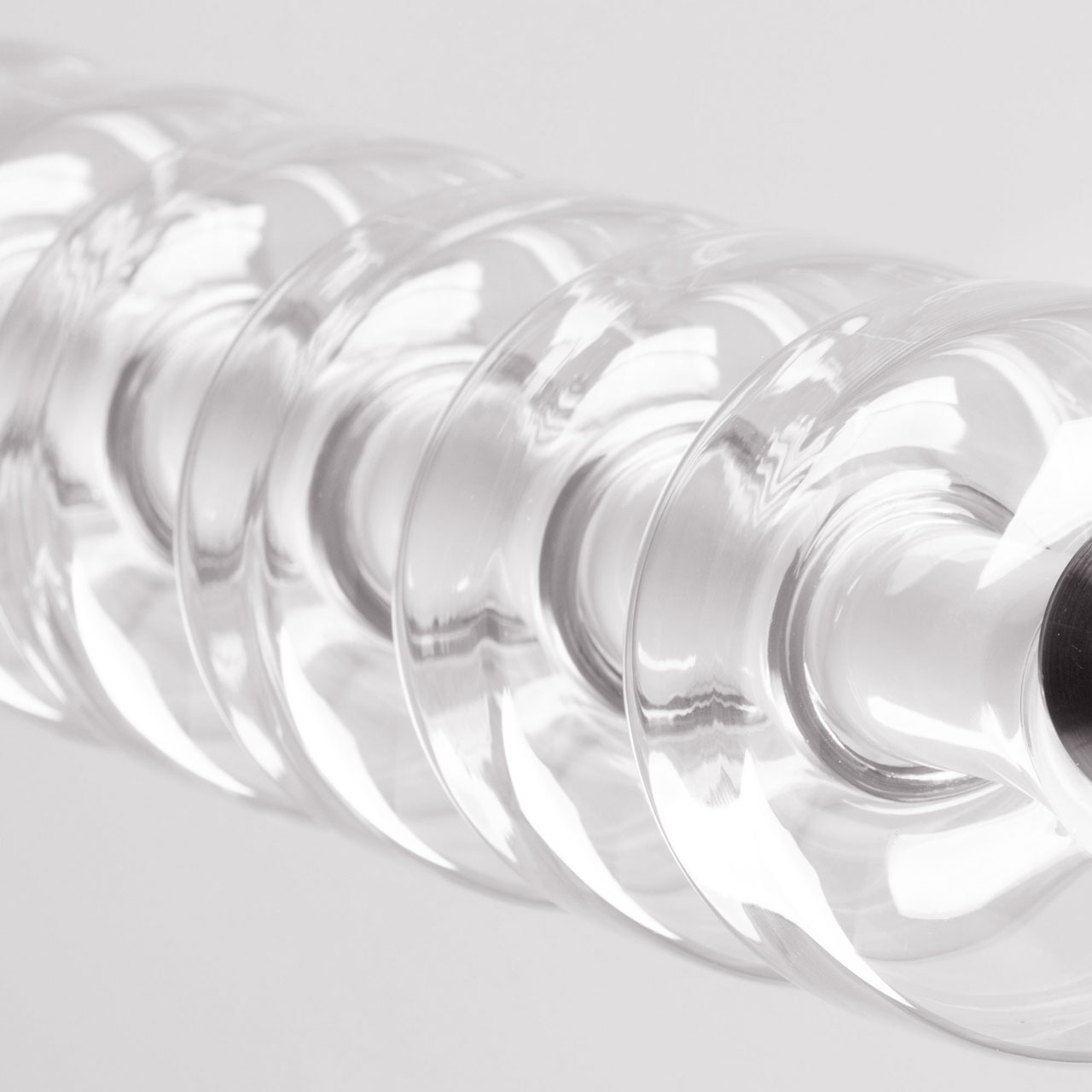Металлическое основание гальванизировано в цвет хрома. Светодиодные источники света закрыты белым матовым акрилом. Светильник декорирован прозрачными стеклянными плафонами.