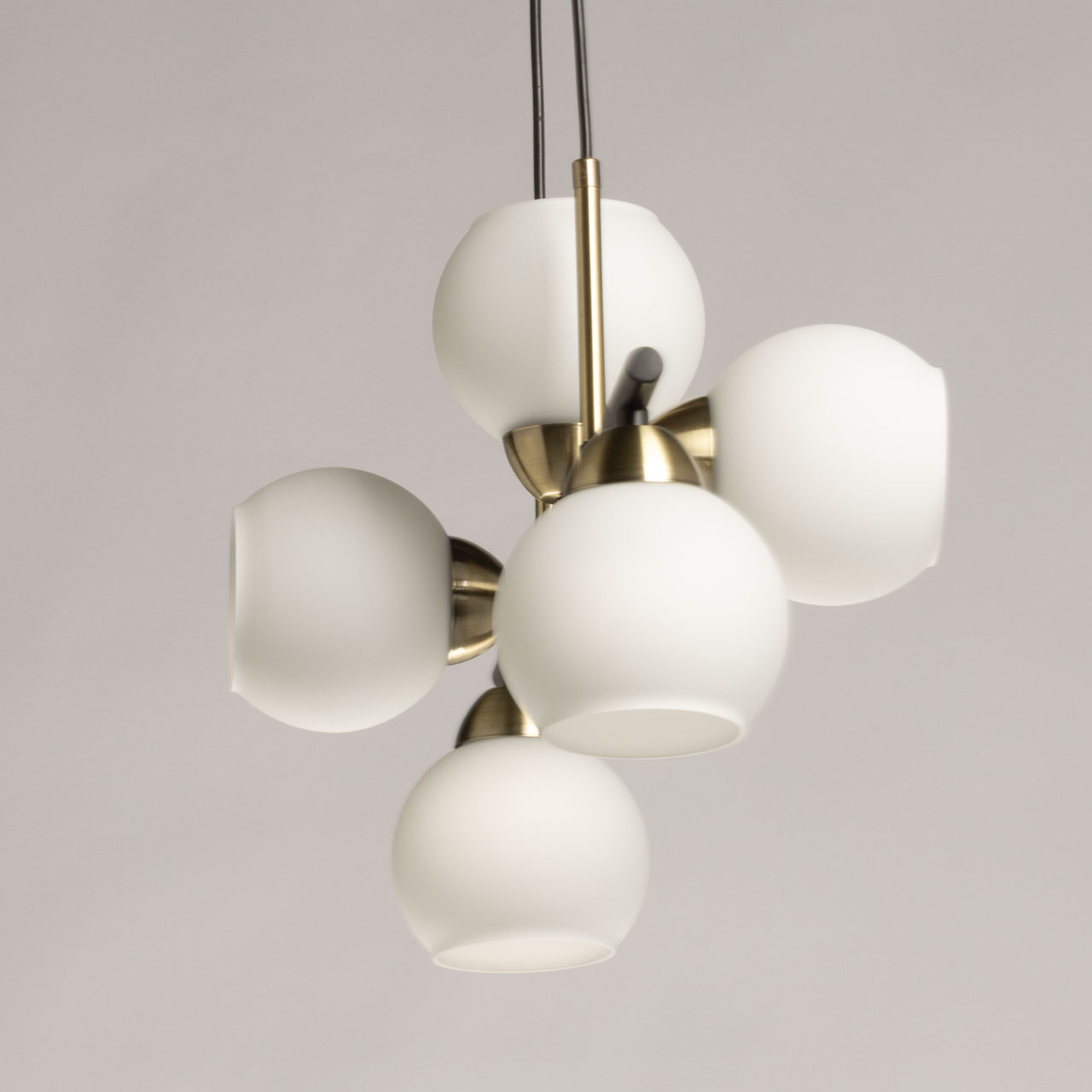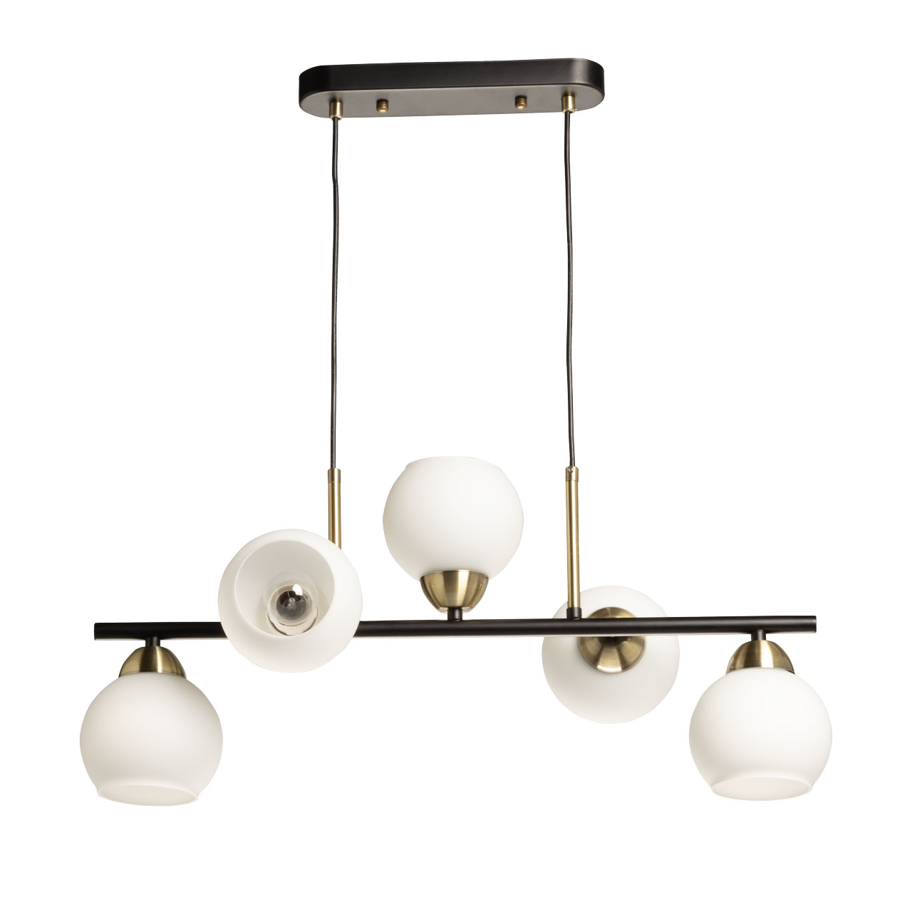 Металлическое основание окрашено в черный цвет. Отдельные элементы основания гальванизированы в цвет античной бронзы. Заменяемые источники света закрыты стеклянными плафонами белого матового цвета.