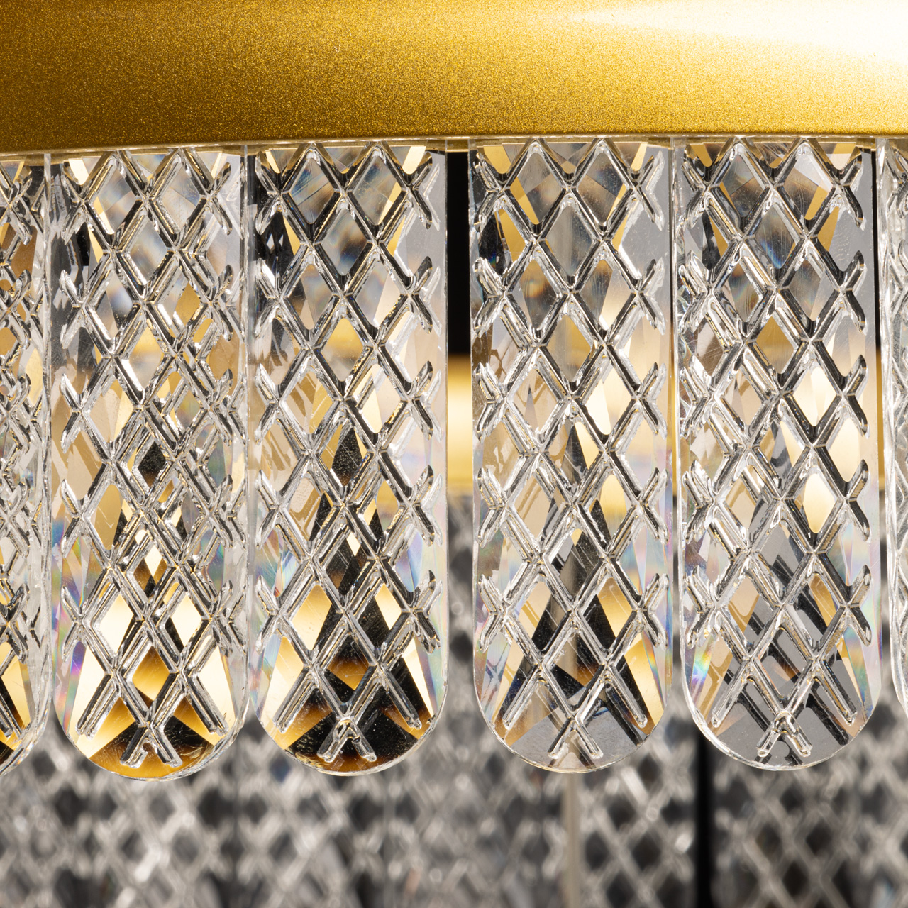 Светильник Орион привлекает внимание благодаря своему уникальному дизайну. Он состоит из двух кольцевых плафонов, которые создают эффект легкости и воздушности. Кольца крепятся на прочные металлические тросы, что обеспечивает надежность и безопасность. Общая высота светильника составляет 90 см, с возможностью регулировки, что делает его идеальным выбором для помещений с высокими потолками.Основание светильника выполнено из качественного металла и покрыто гальванизированным золотым слоем. Этот элегантный золотистый оттенок придает изделию роскошный вид и позволяет ему гармонично сочетаться с различными стилями интерьера — от классического до современного минимализма. Такой светильник станет настоящим акцентом в любом помещении, добавляя ему изысканности и стиля.Светильник Орион не только красив, но и функционален. Он оснащен пультом дистанционного управления, который позволяет регулировать температуру света в диапазоне от 3000 до 6000 K. Это дает возможность создать необходимую атмосферу в зависимости от времени суток или настроения. Теплый свет идеально подходит для уютных вечеров, в то время как холодный свет способствует концентрации и активности.Встроенные светодиоды мощностью 92W обеспечивают яркое и эффективное освещение, способное осветить помещение площадью до 25 квадратных метров. Это делает светильник Орион идеальным решением для гостиных, столовых и других пространств. Плафоны светильника украшены подвесками из прозрачного хрусталя с необычными гранями, что добавляет дополнительный шарм и изящество. Эти детали не только усиливают световой эффект, но и создают игру света и теней, что делает освещение более интересным и динамичным.Лаконичный и современный дизайн светильника Орион соответствует актуальным тенденциям в мире освещения. Простота форм и отсутствие лишних деталей делают его универсальным элементом, который легко вписывается в любой интерьер. Он может использоваться как самостоятельный источник света, так и в сочетании с другими осветительными приборами, создавая гармоничное освещение в пространстве.