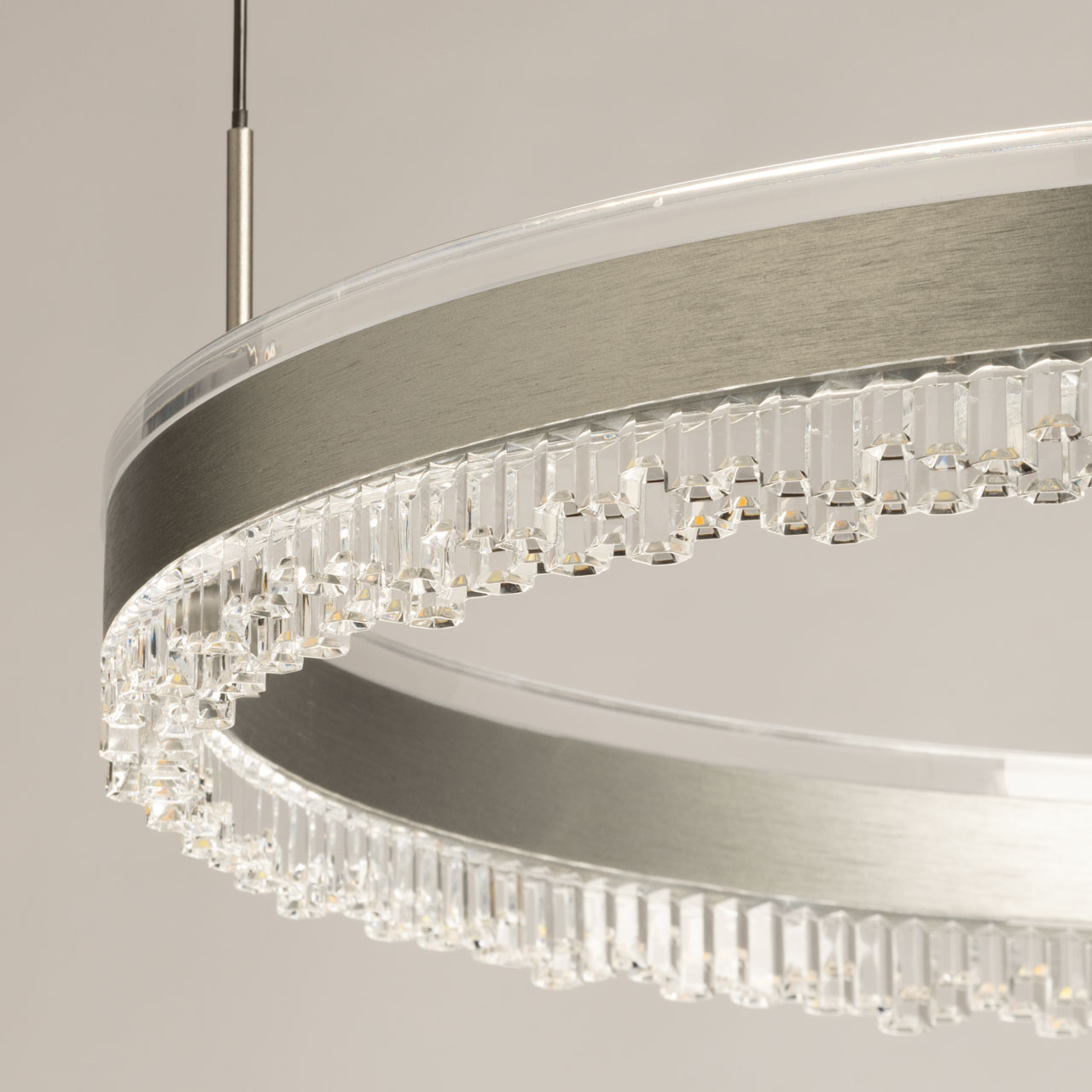 Металлическое основание подвесной люстры окрашено в черный цвет. Плафон люстры выполнен из сплава алюминия с цинком и гальванизирован в цвет графита. Светодиодный источник света закрыт прозрачным акрилом.