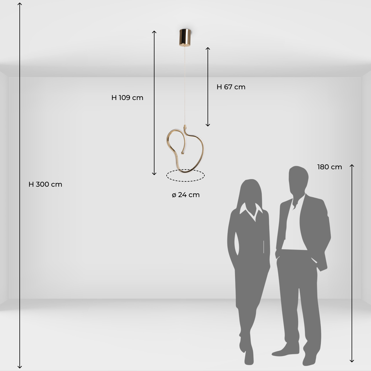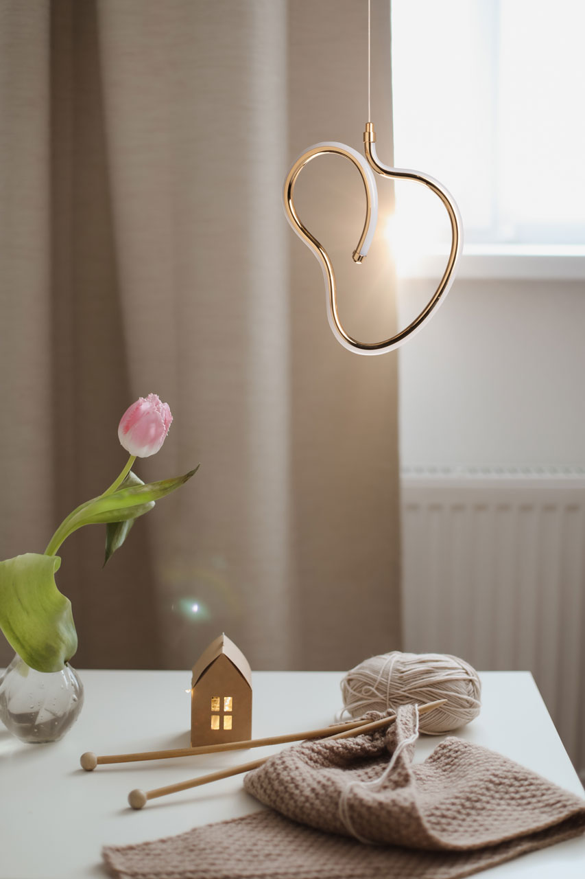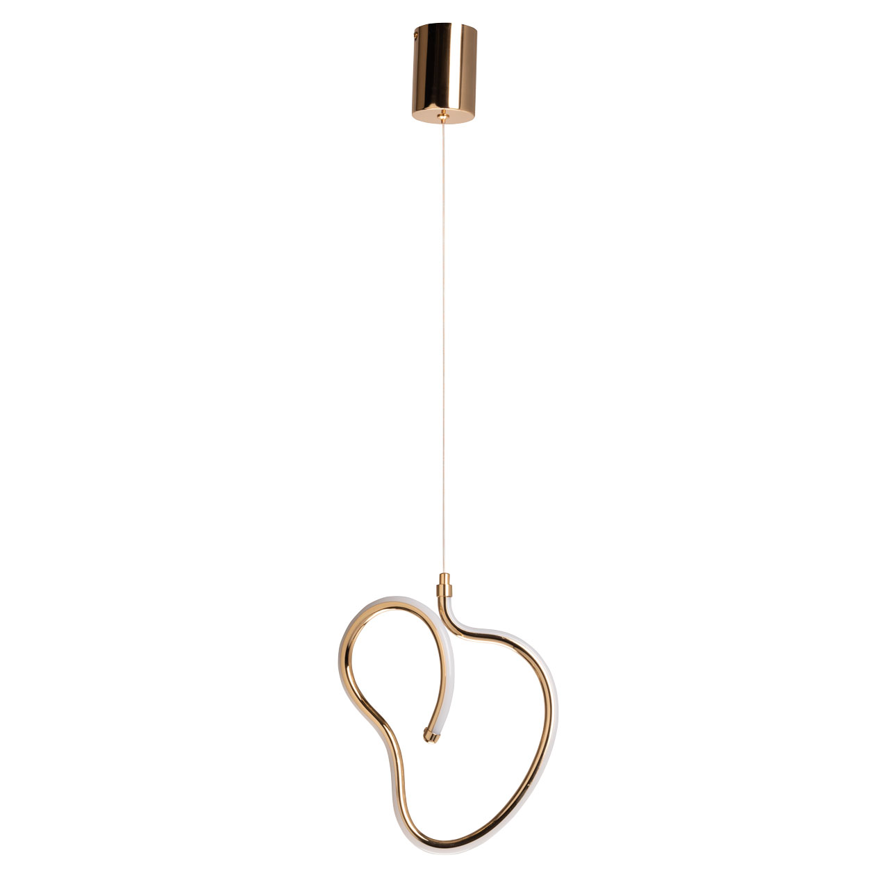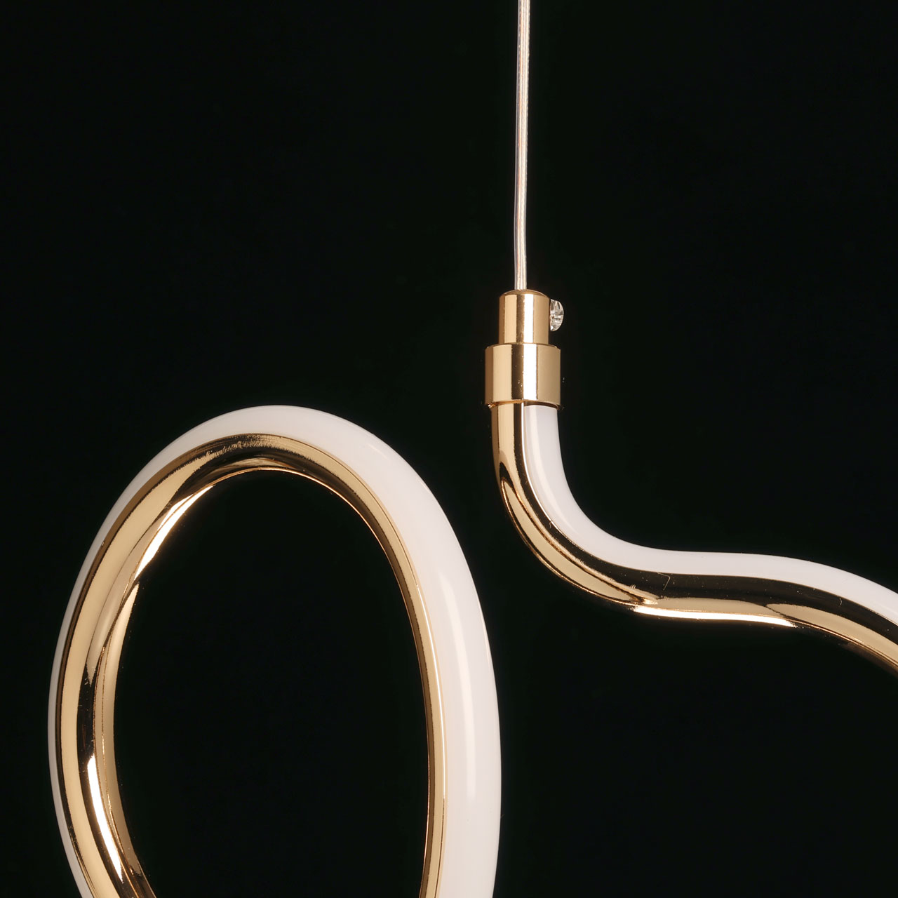 Металлическое основание подвеса гальванизировано в цвет французского золота. Корпус плафона выполнен из акрила и гальванизирован в цвет основания. Светодиодные источники света закрыты белым матовым силиконом.