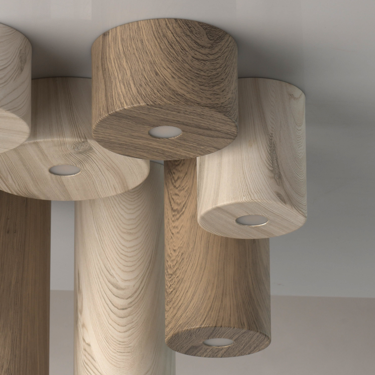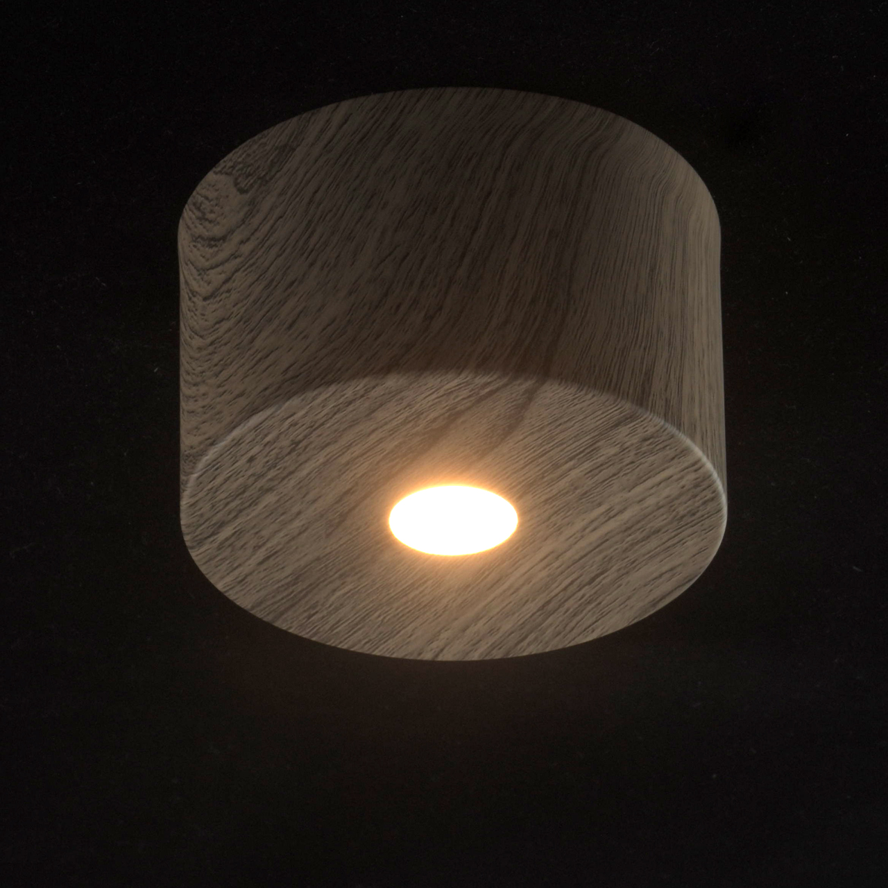Основание светильника выполнено из металла, рисунок структуры темного дуба нанесён по технологии плёночного окрашивания. Светодиодный источник света типа COB закрыт рассеивателем из белого матового акрила.