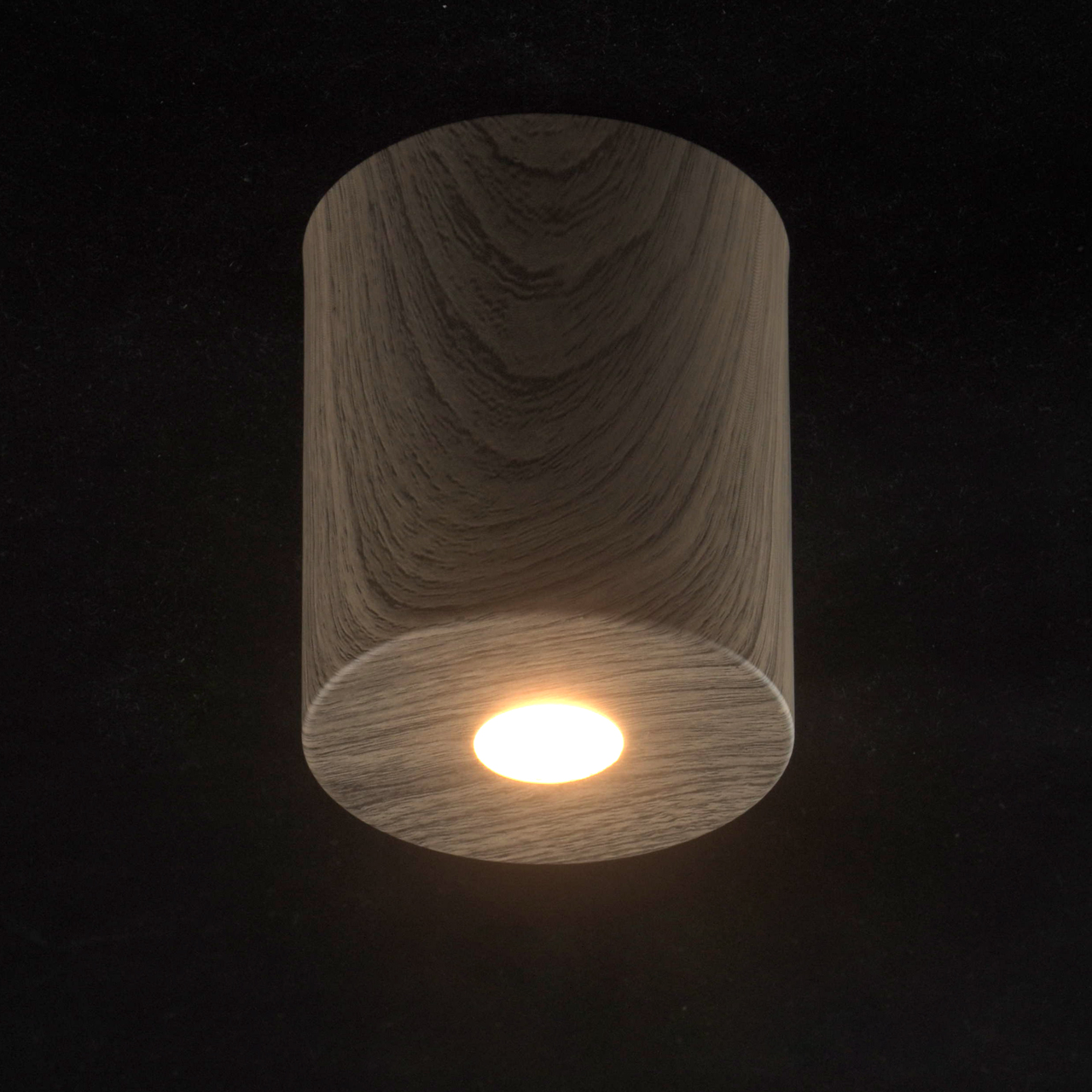 Основание светильника выполнено из металла, рисунок структуры темного дуба нанесён по технологии плёночного окрашивания. Светодиодный источник света типа COB закрыт рассеивателем из белого матового акрила.