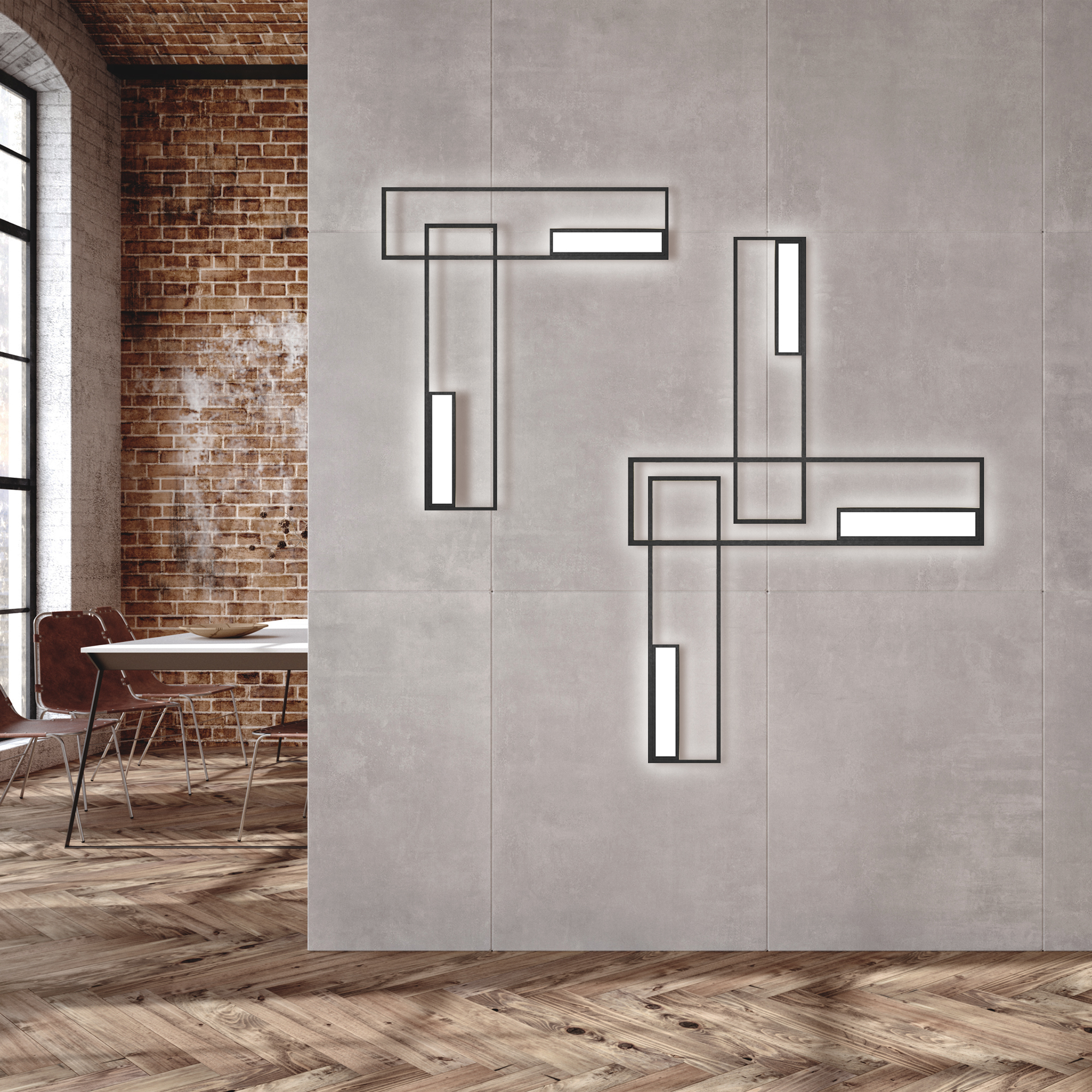 периметру металлических рам. Минималистичная композиция становится объемной,