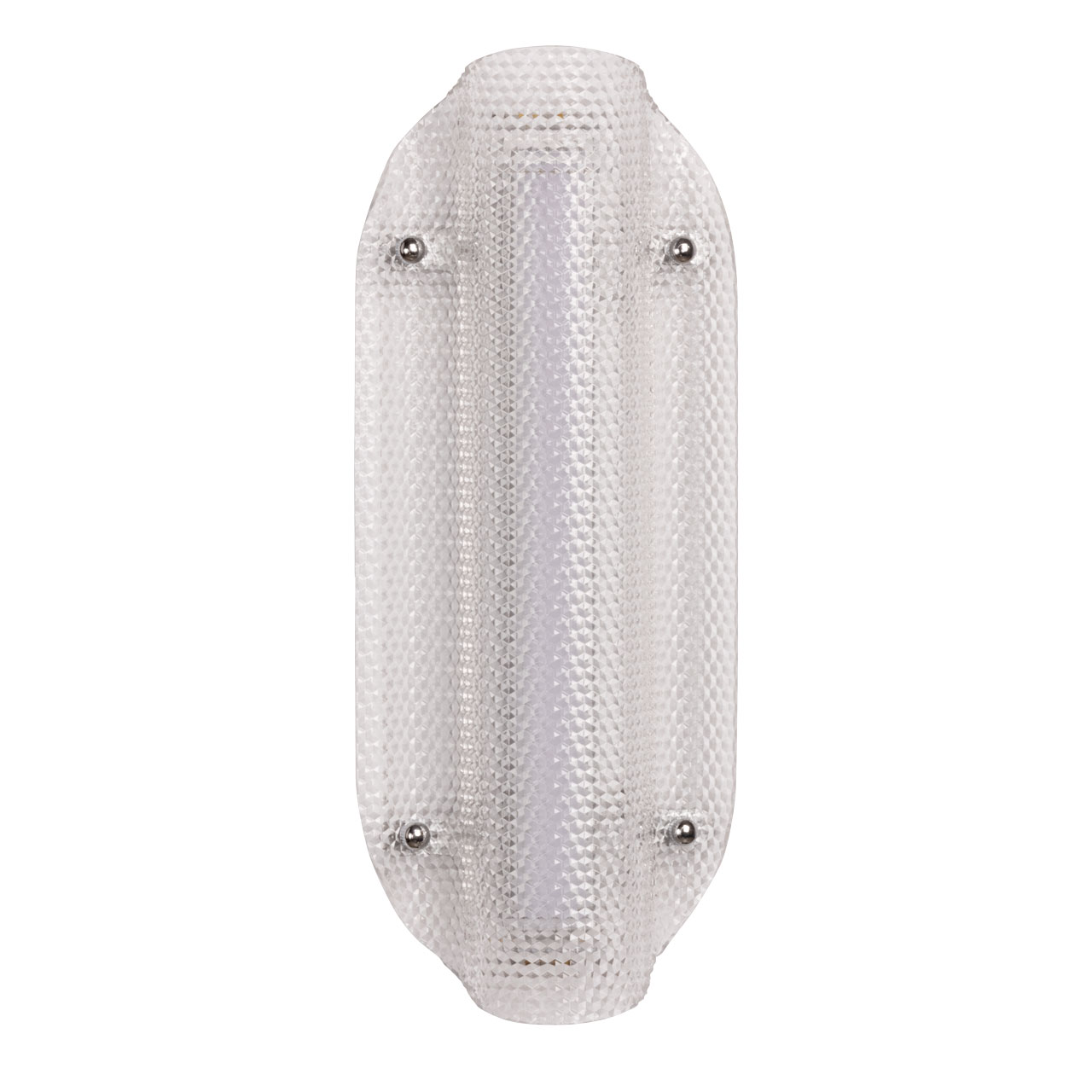 Металлическое основание настенного бра окрашено в цвет перламутрового серебра. Плафон выполнен из прозрачного фактурного литьевого акрила.