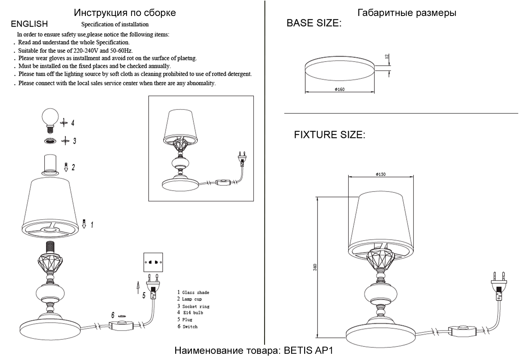 | Цвет абажура/плафона |