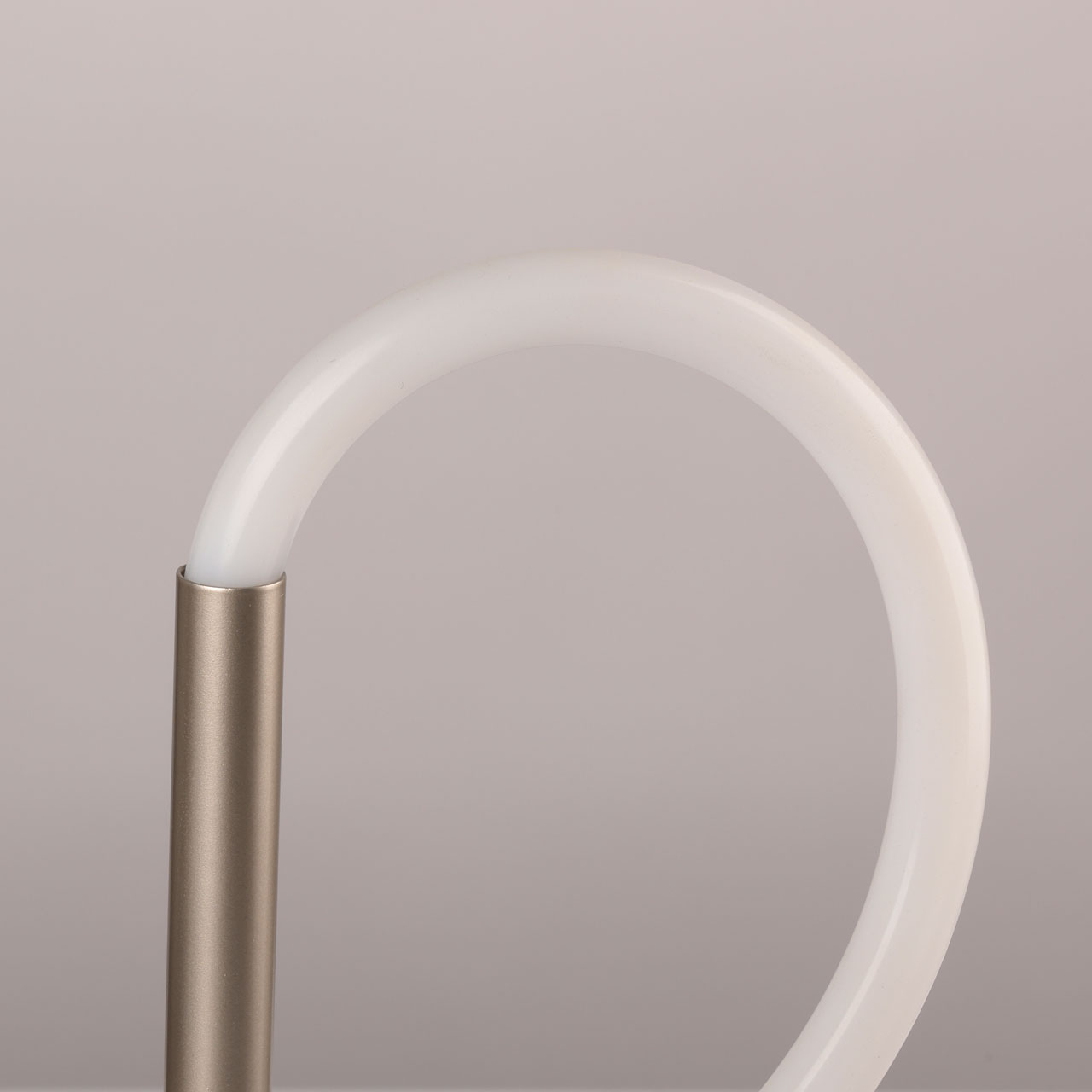 Металлическое основание настольной лампы окрашено в цвет никеля. Гибкий плафон настенного бра выполнен из белого матового силикона.