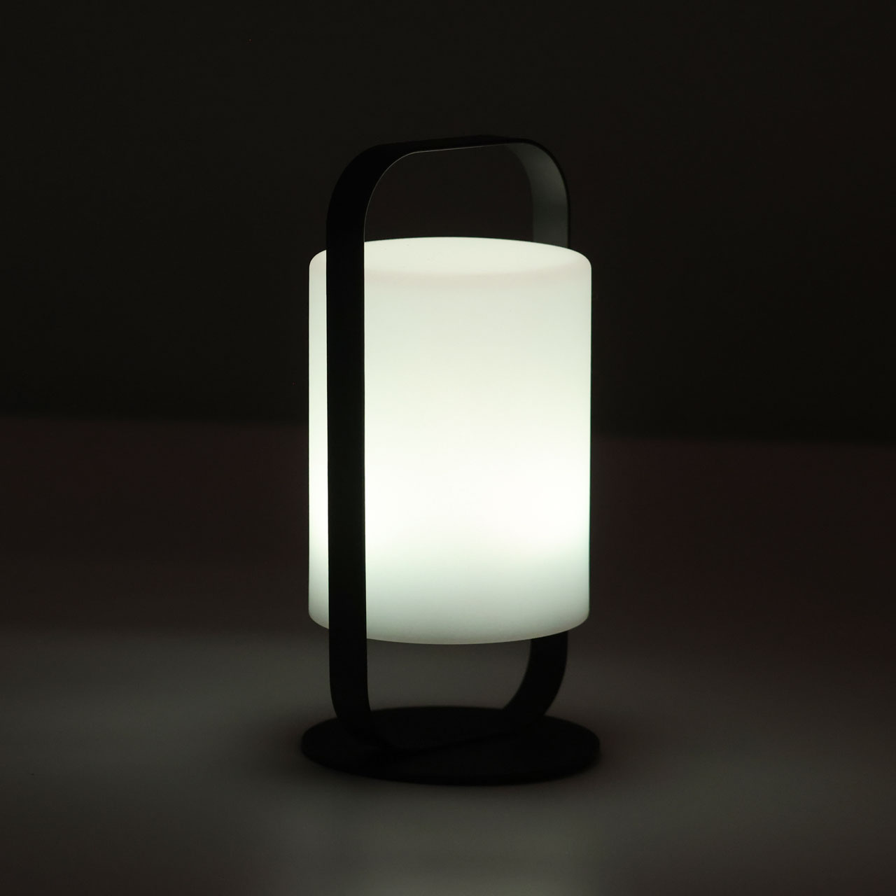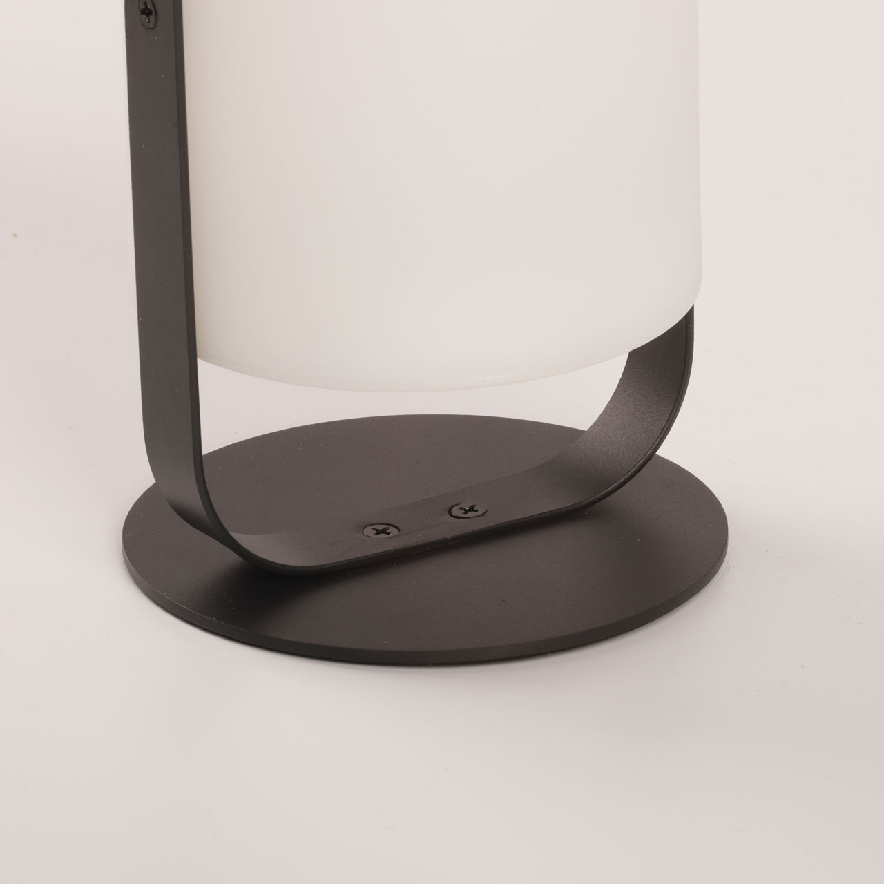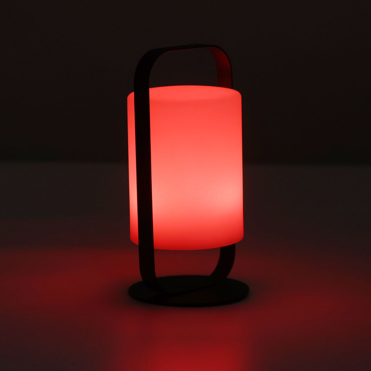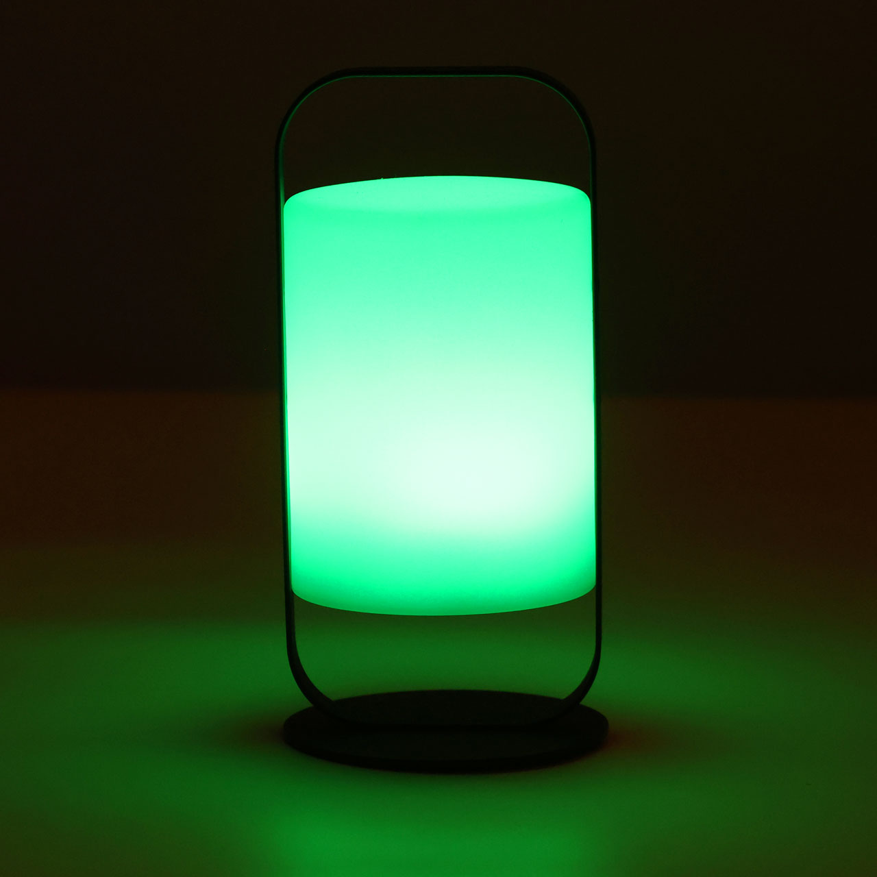 Металлическое основание настольной лампы окрашено в черный цвет. Светодиодный источник света белый, теплый+RGB закрыт белым матовым акрилом. Пульт и зарядный кабель USB входят в комплект.