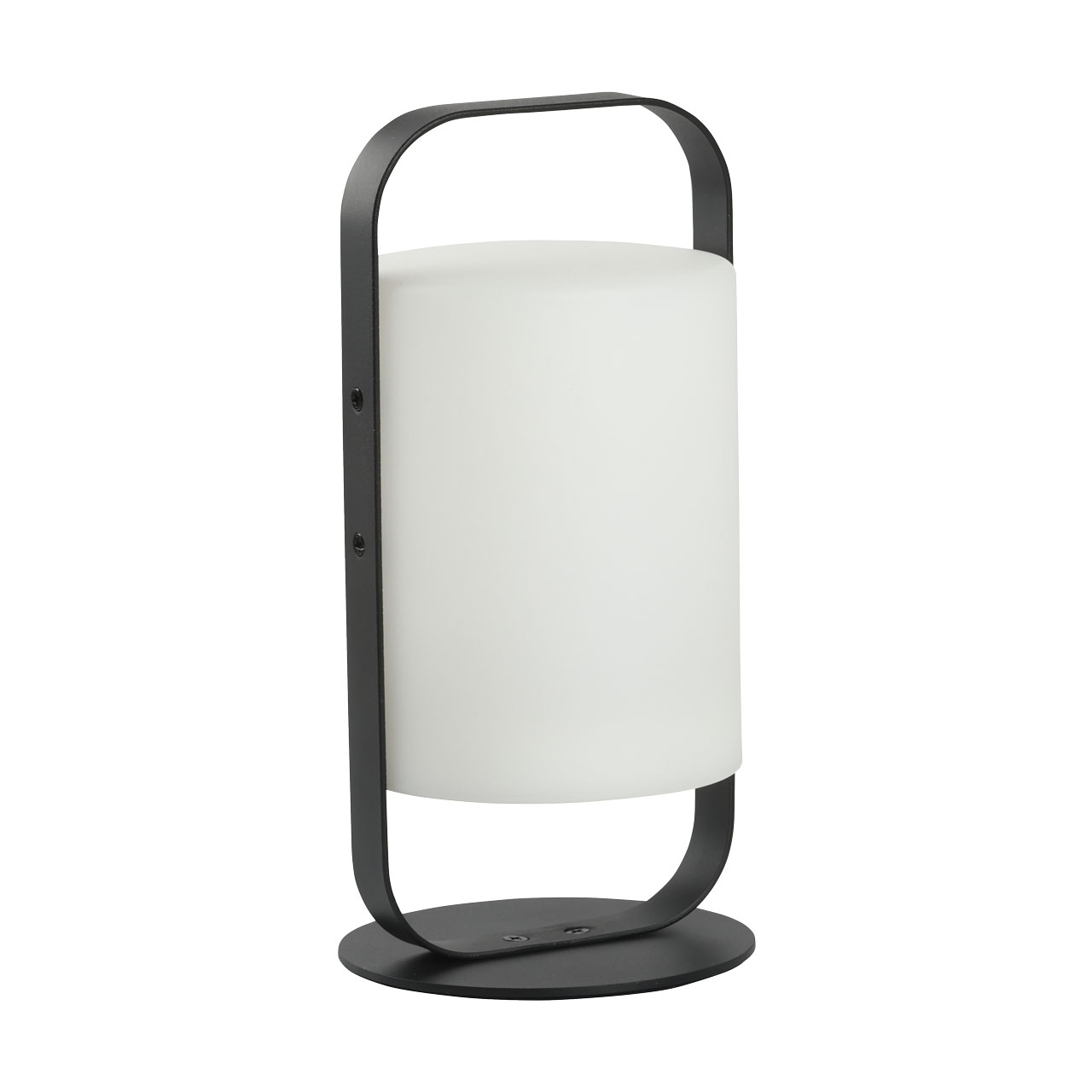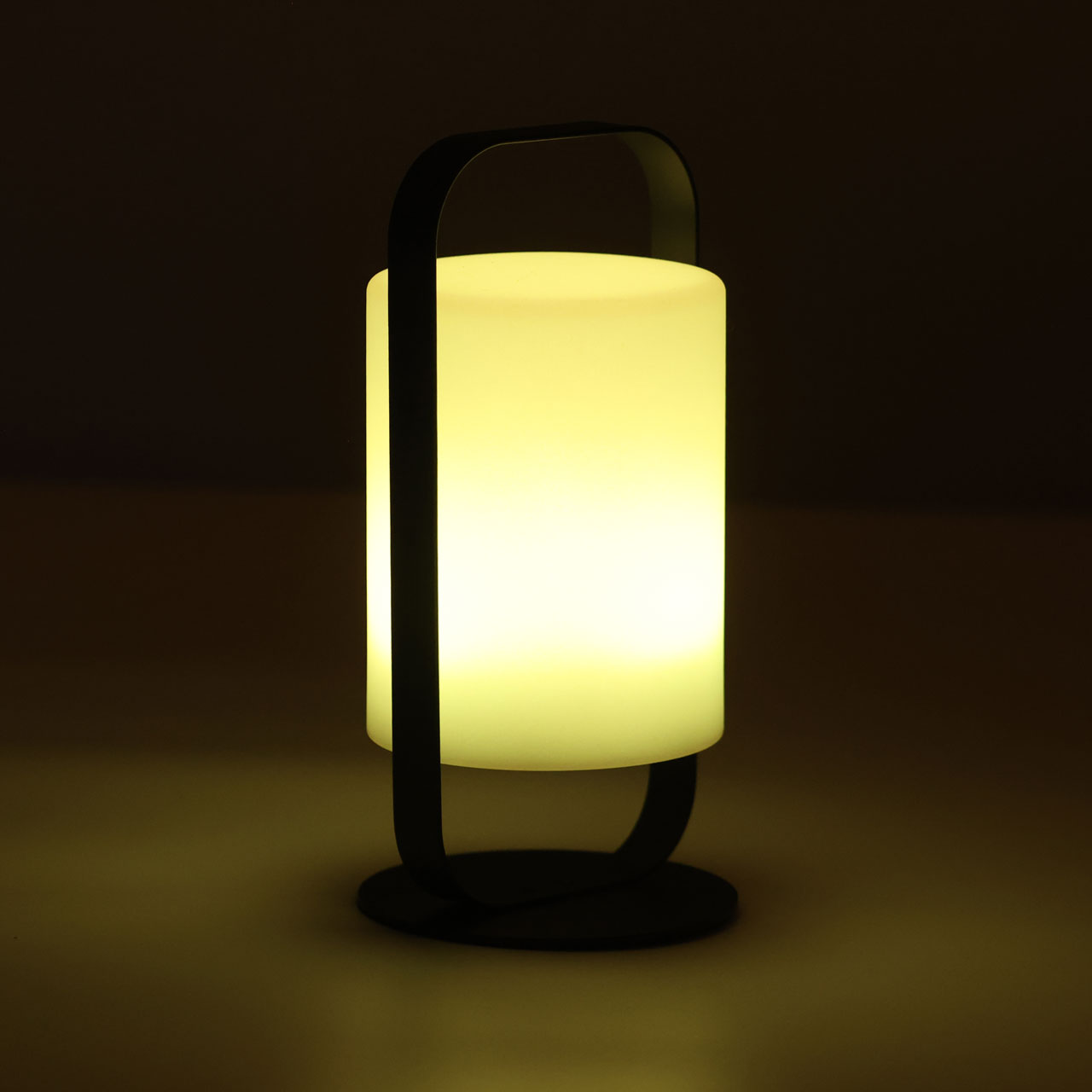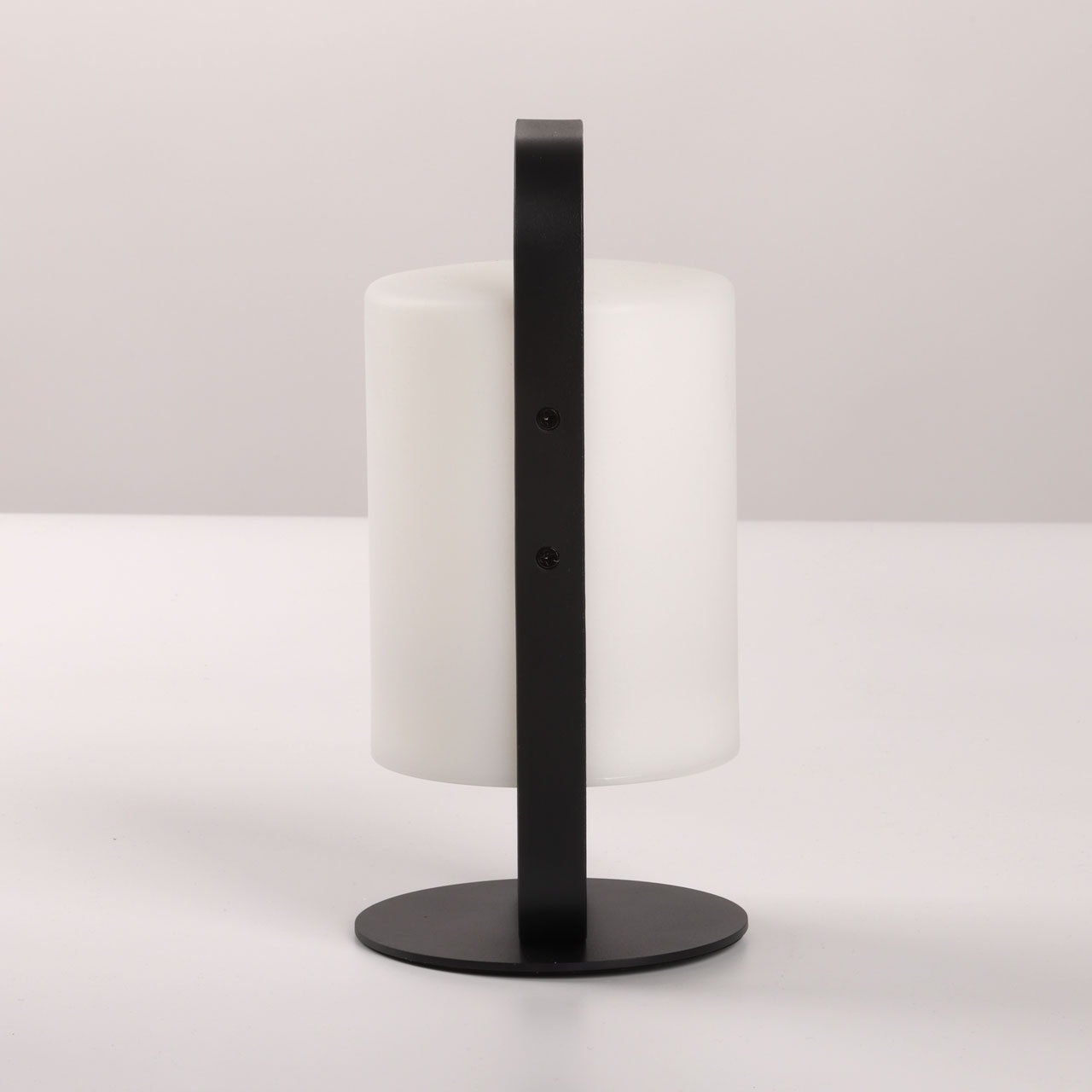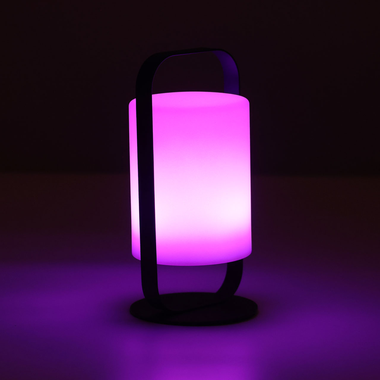 Металлическое основание настольной лампы окрашено в черный цвет. Светодиодный источник света белый, теплый+RGB закрыт белым матовым акрилом. Пульт и зарядный кабель USB входят в комплект.