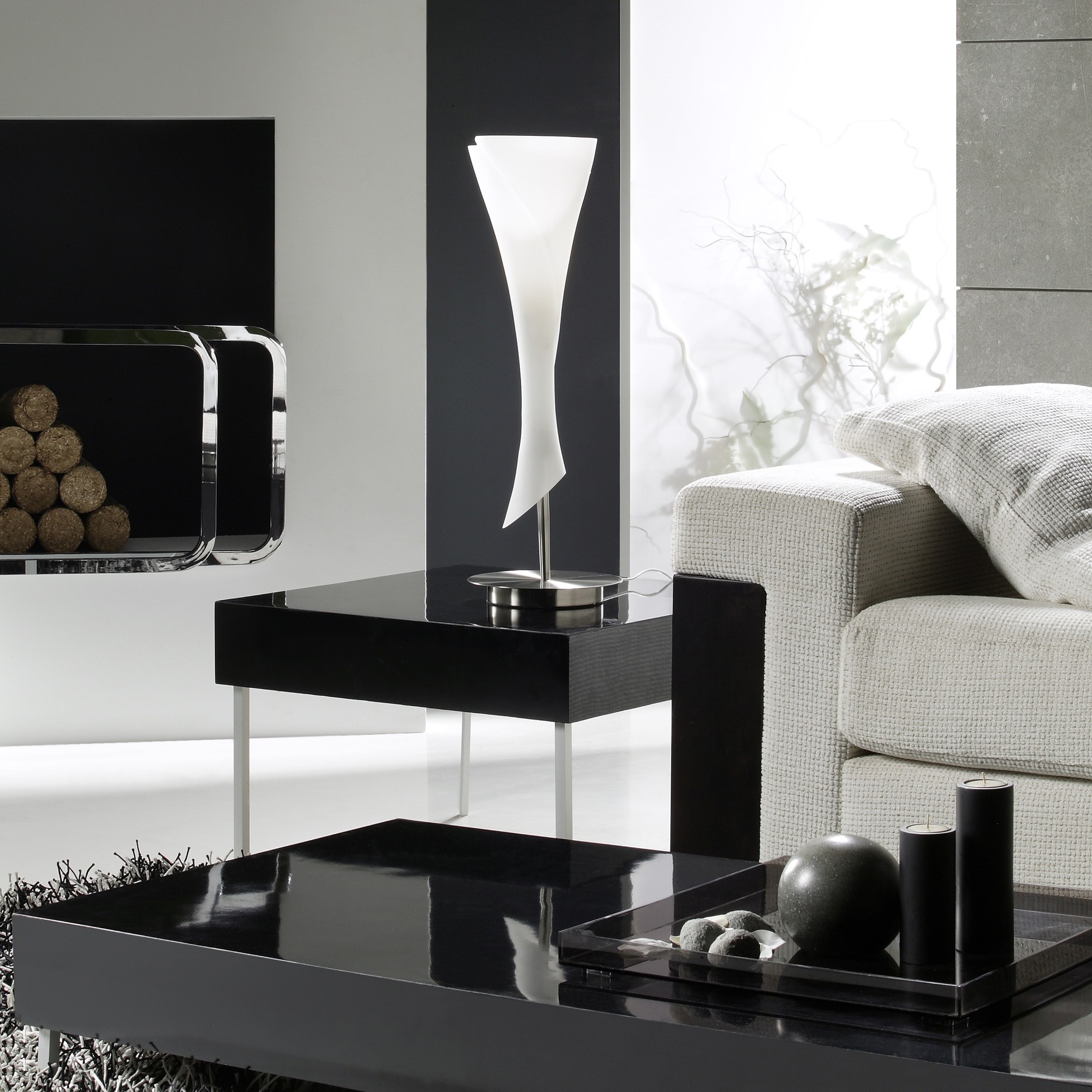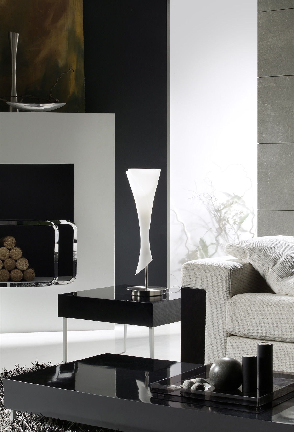 фоне черных и темно-серых стен, чтобы создать контраст в интерьере. Торшер и