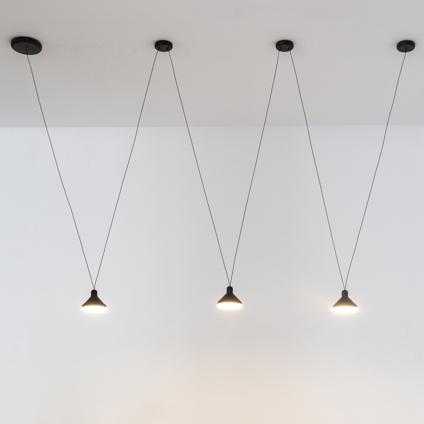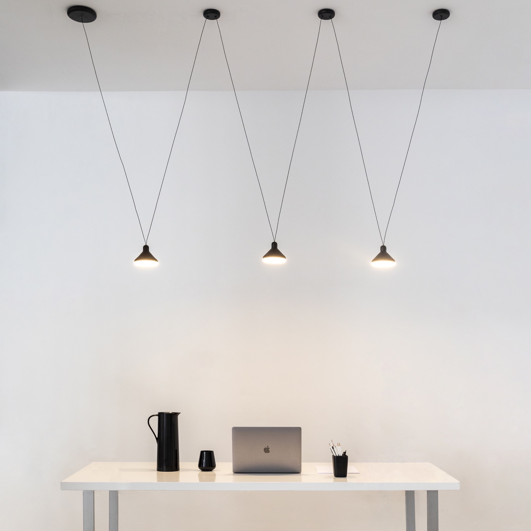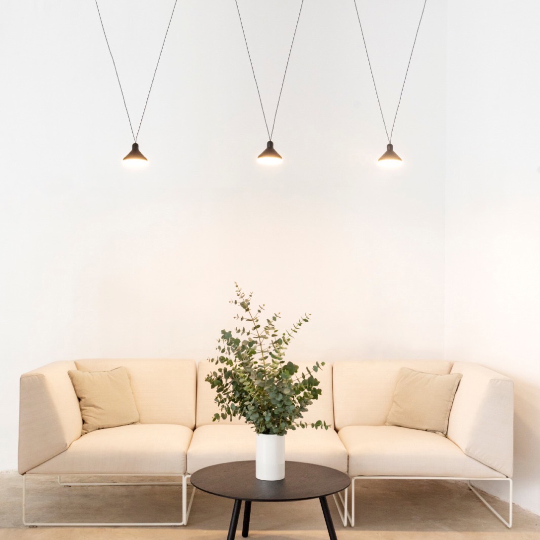 Изобретательная система подвески группы светильников ANTARES придает интерьеру оригинальности и создает ритм в пространстве комнаты. Комбинация нескольких светильников станет идеальным источником света для практически любого пространства в современном стиле. Светильники особенно впишутся в непринужденную и размеренную атмосферу офиса или кафе с высокими потолками.