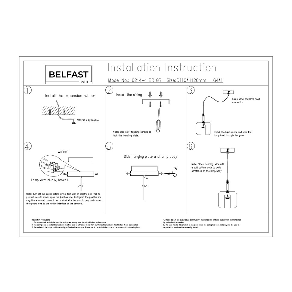 Подвесной светильник Belfast Pansy 6214-1 BR GR Латунь / Стекло / Серый