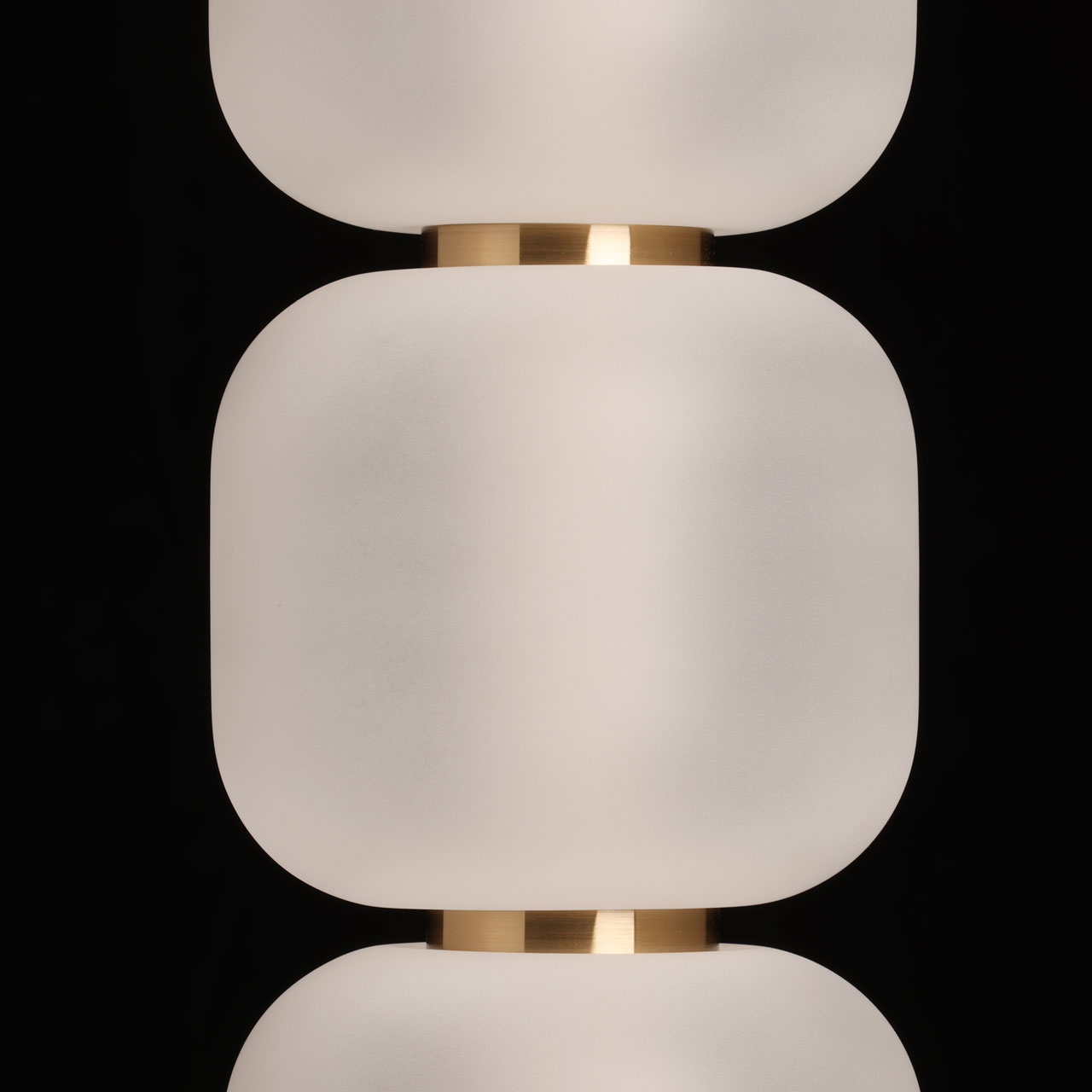 Металлическое основание подвеса гальванизировано в цвет бронзы. Светодиодные источники света закрыты белым акрилом. Подвес декорирован плафонами из матированного стекла.