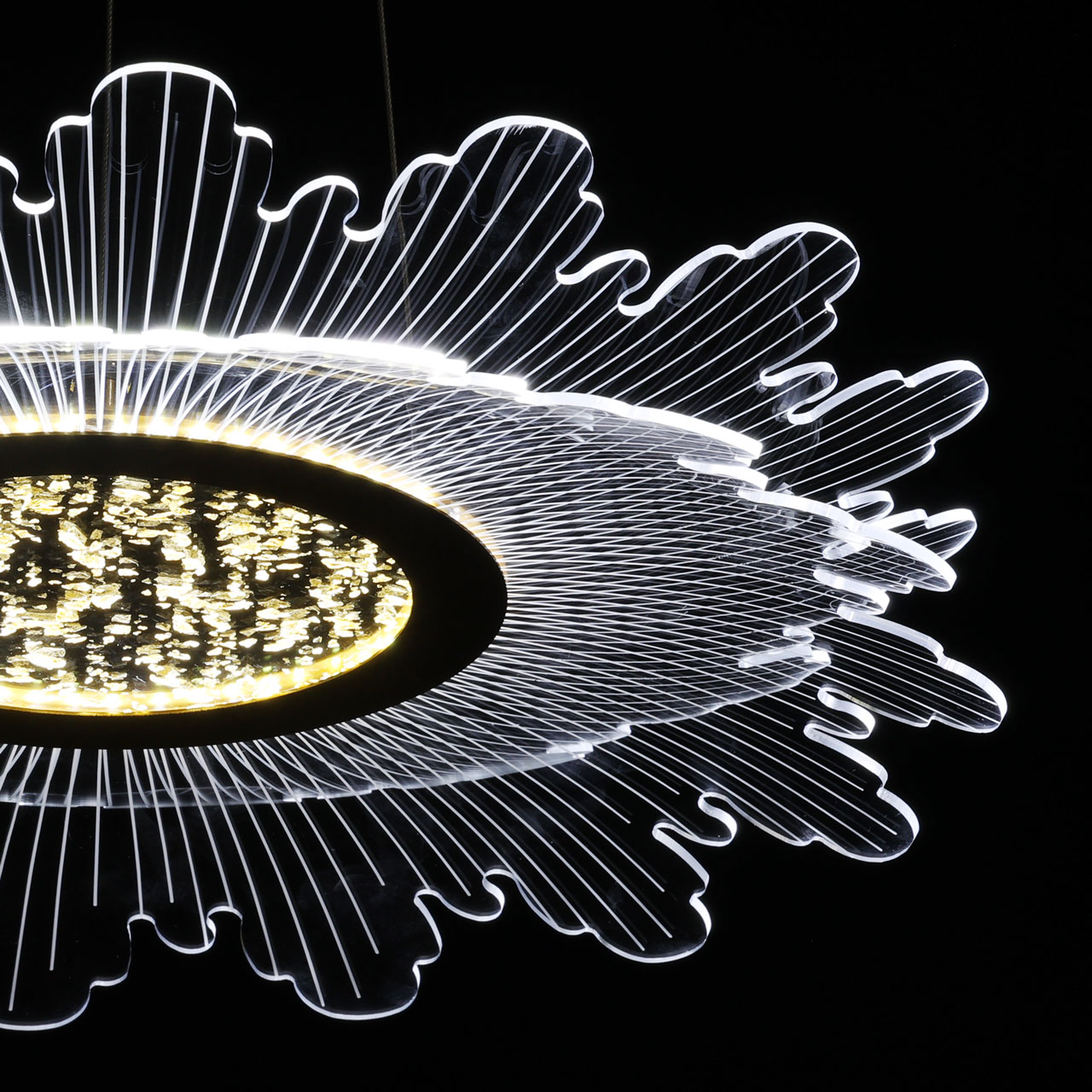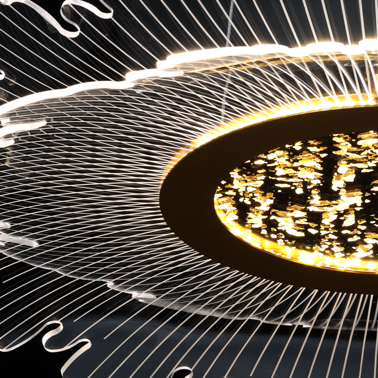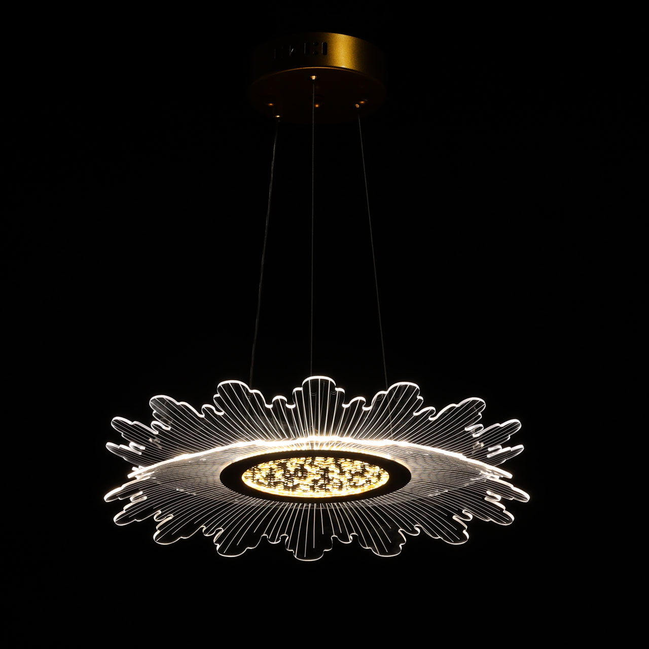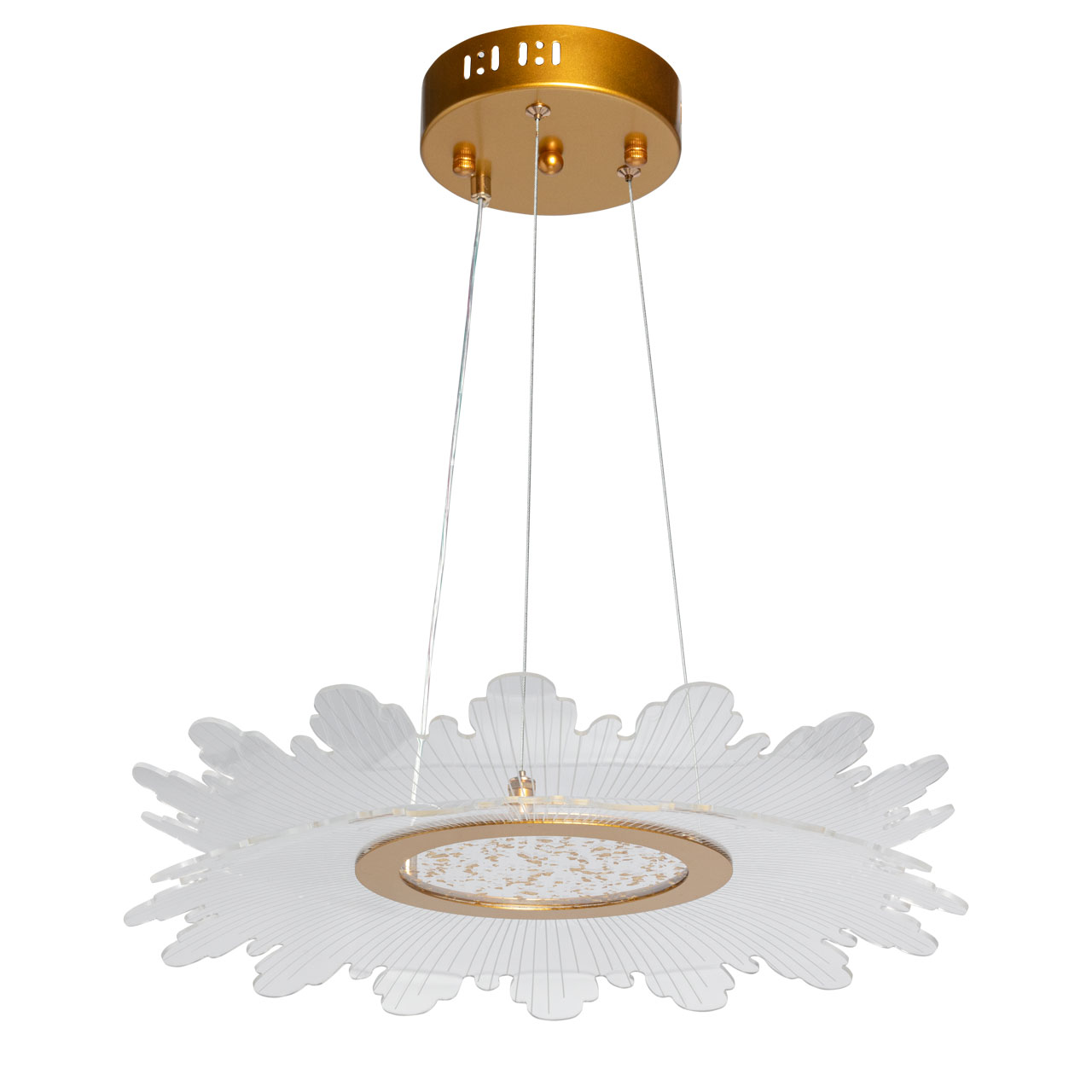 Металлическое основание светильника гальванизировано в цвет золота. Корпус плафона выполнен из сплава алюминия с цинком. Плафон выполнены из прозрачного акрила.