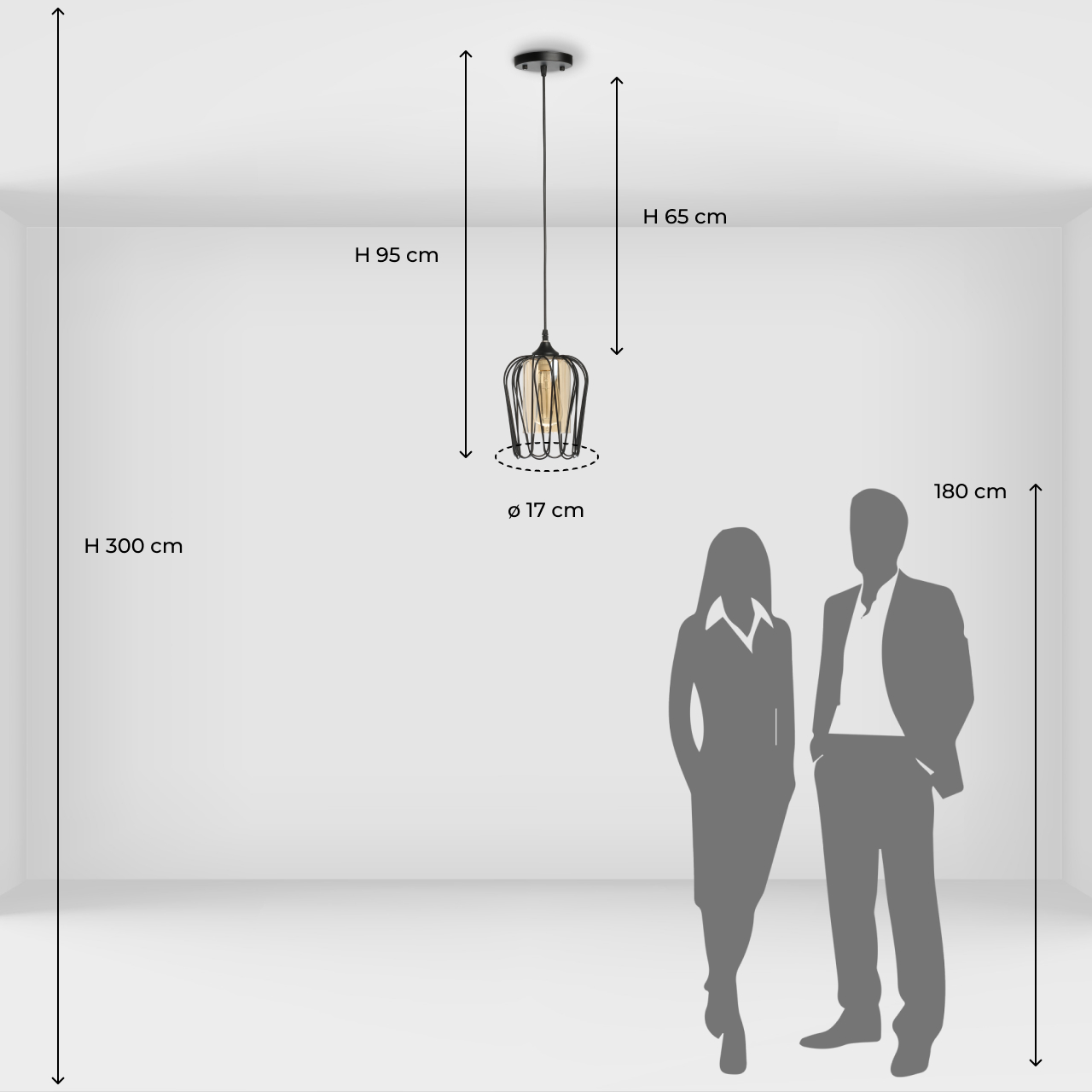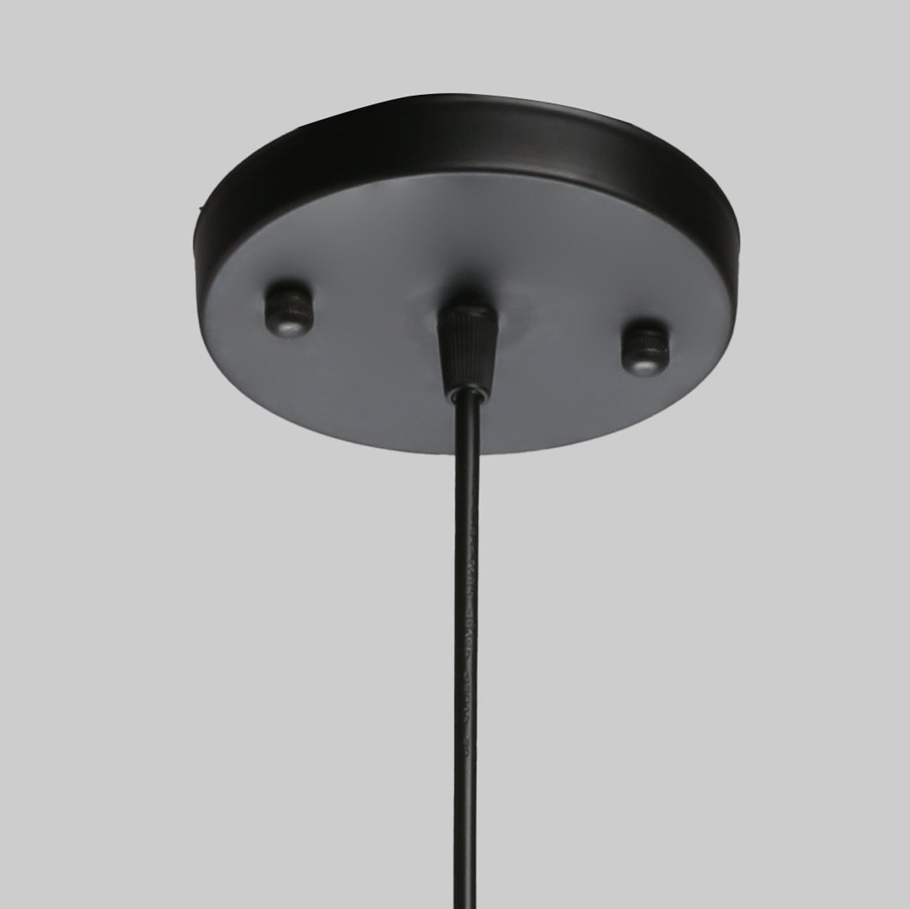 Металлическое основание и плафон подвесного светильника окрашены в черный цвет. Стеклянный внутренний плафон гальванизирован в цвет шампань
