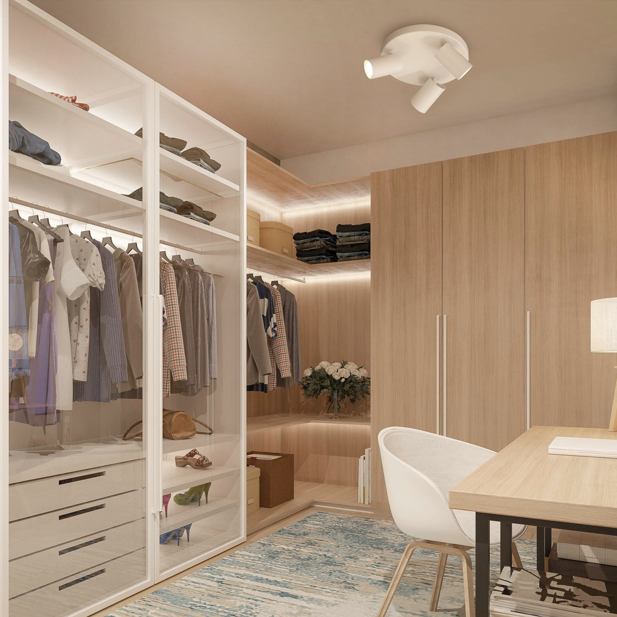 комнаты с помощью пары движений. Потолочные споты позволяют разделить