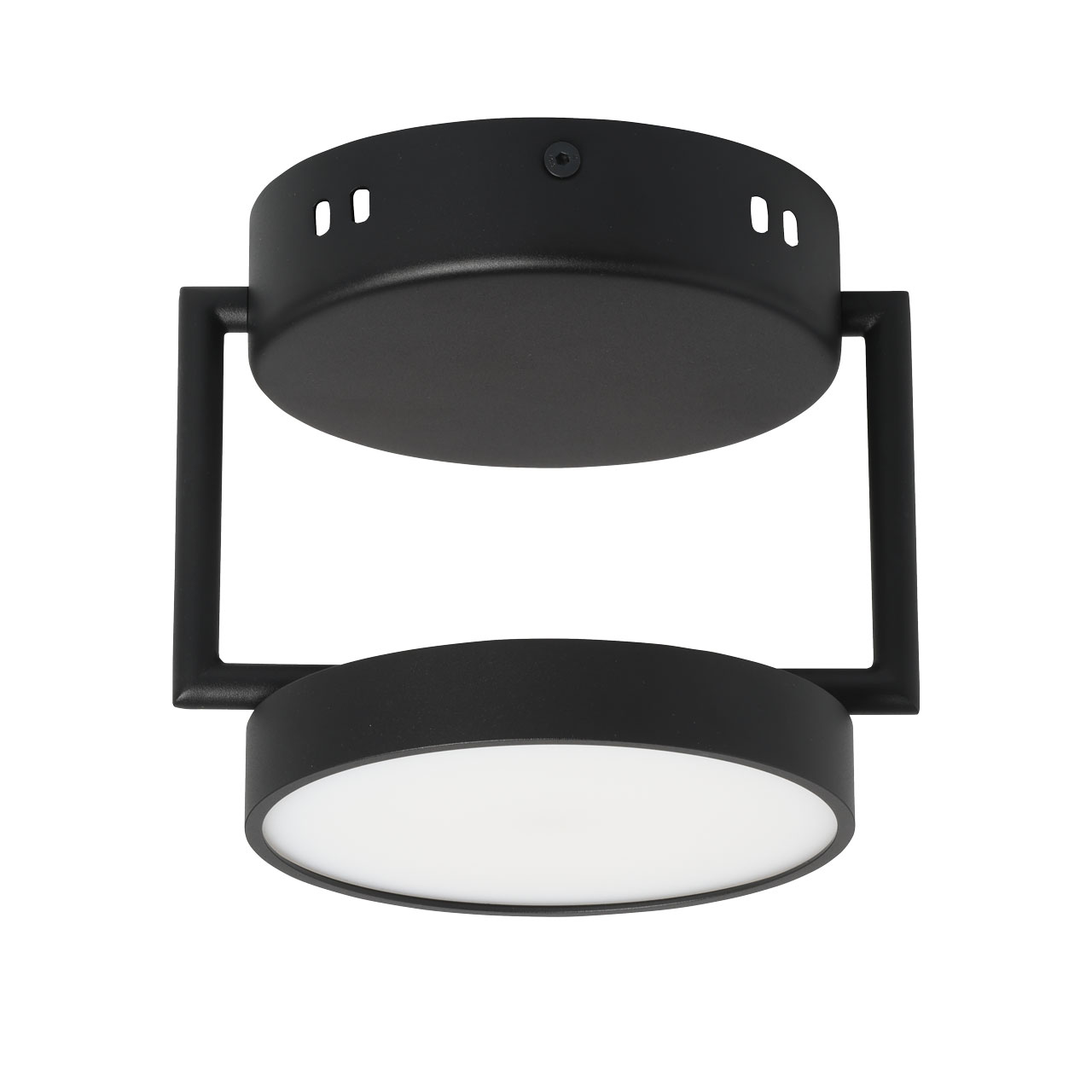 Металлическое основание потолочного светильника обработано по технологии порошкового окрашивания в черный цвет. Светодиодные источники света закрыты белым матовым акрилом.