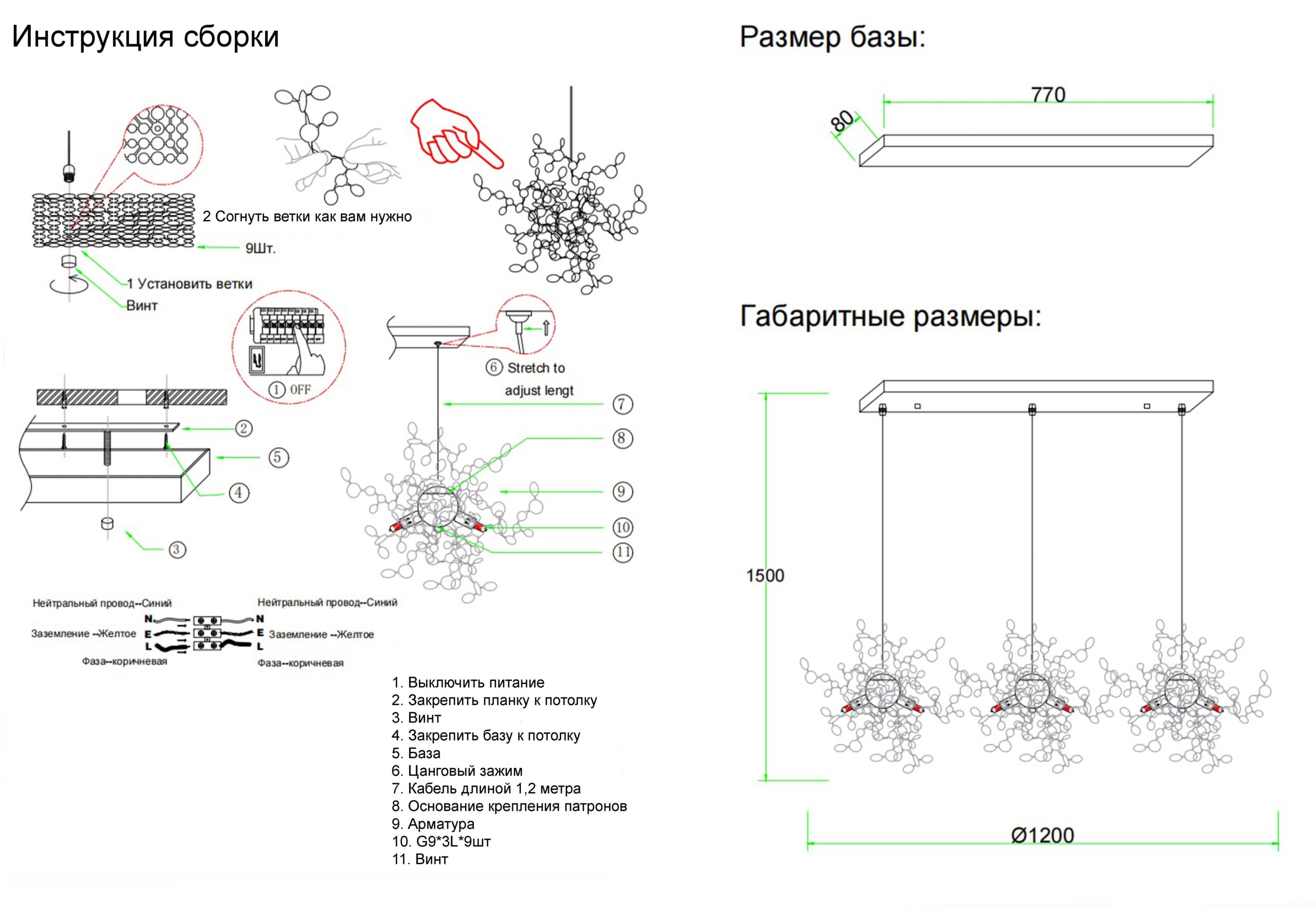 Светильник подвесной Crystal Lux GARDEN SP3х3 L1200 CHROME