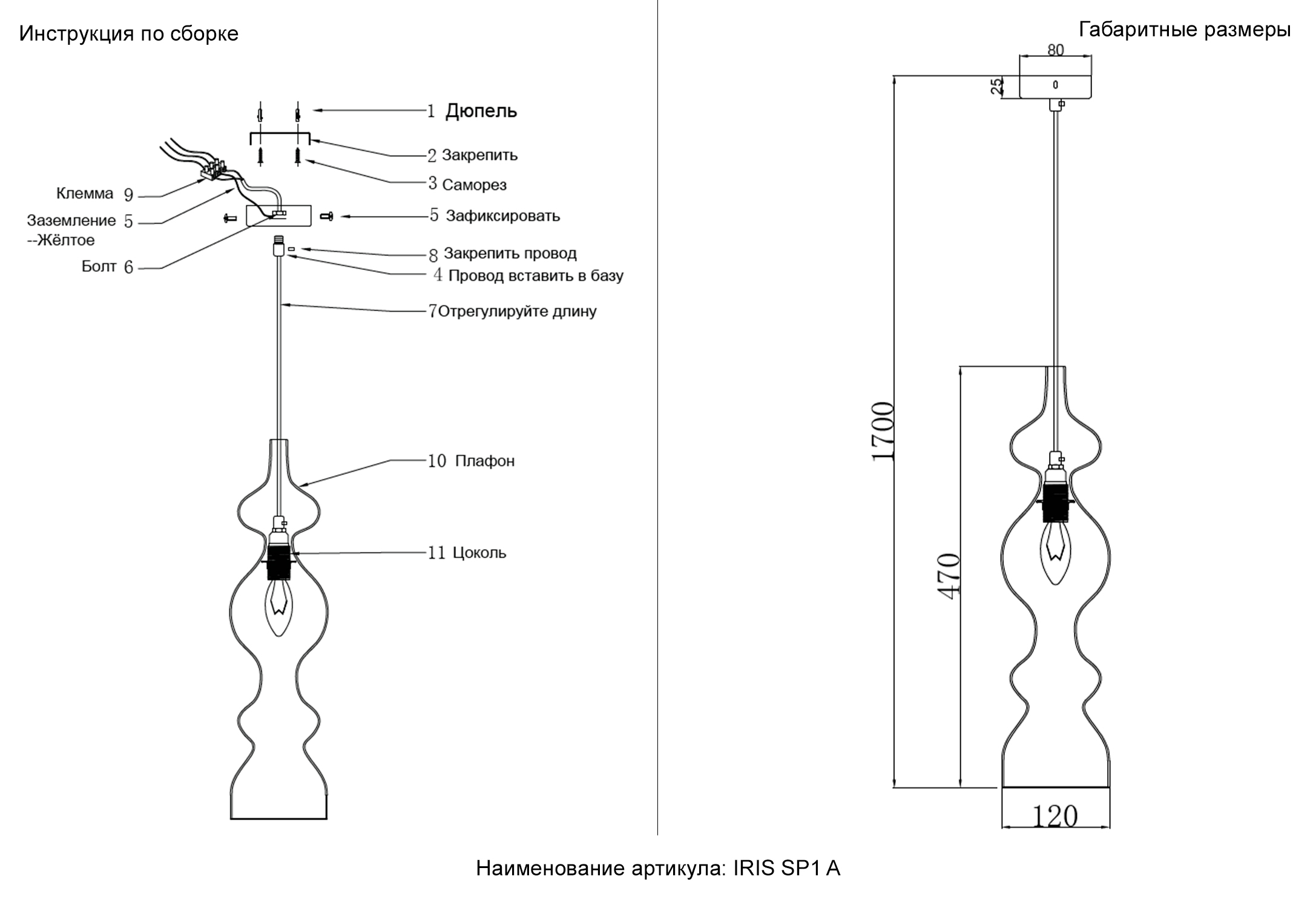 Светильник подвесной Crystal Lux IRIS SP1 A SMOKE