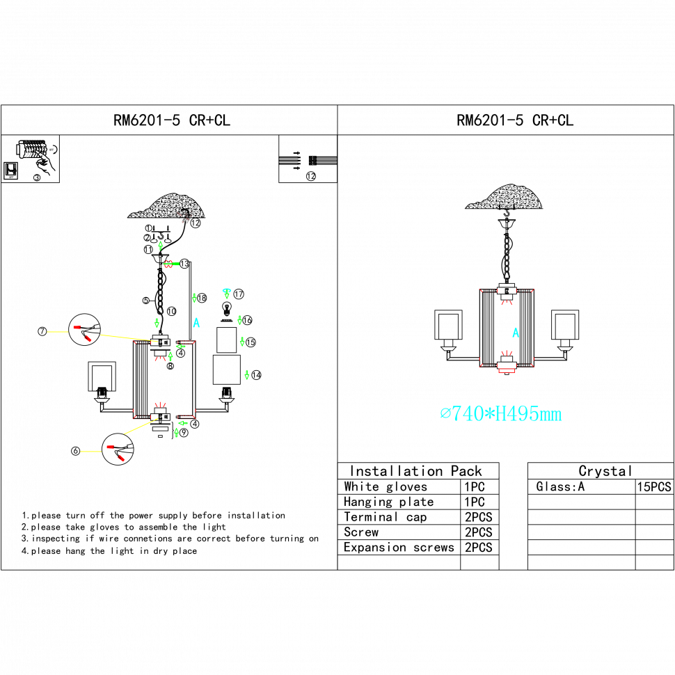 Светильник подвесной iLamp King RM6201-5 CR+CL