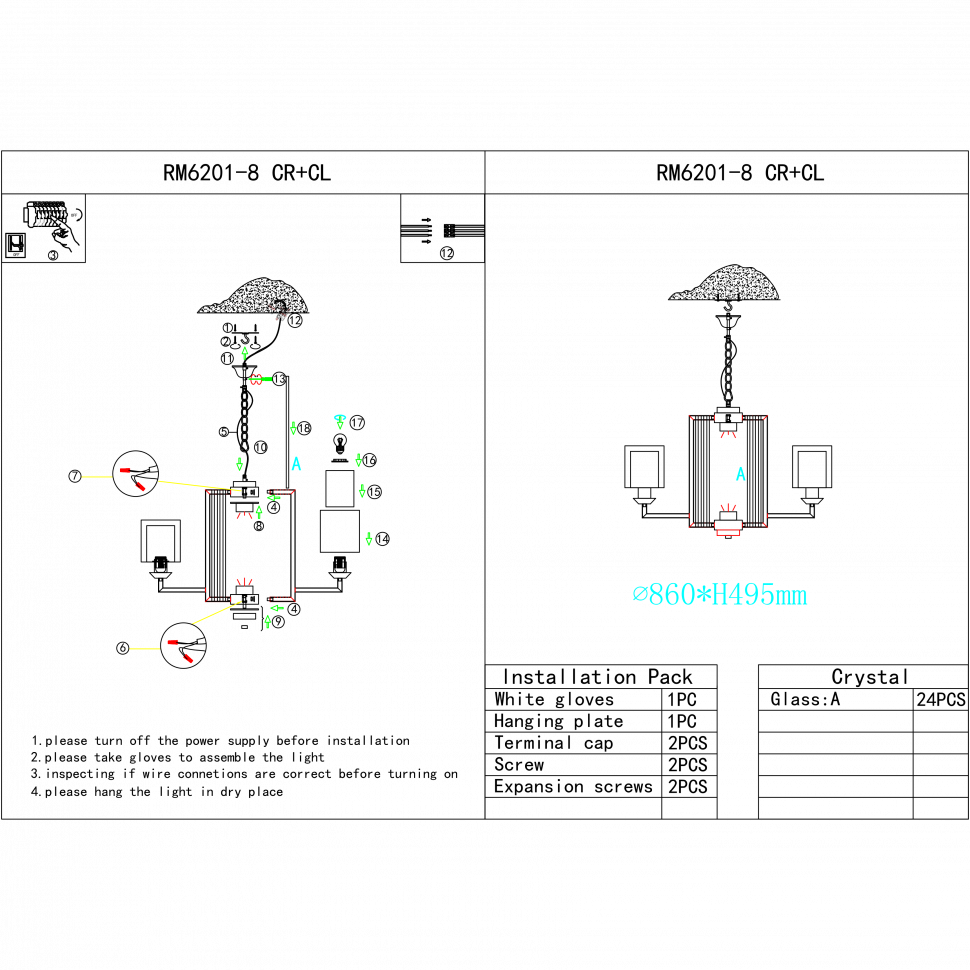 Светильник подвесной iLamp King RM6201-8 CR+CL