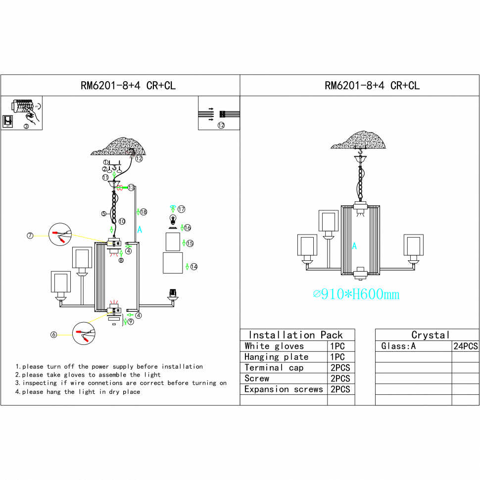 Светильник подвесной iLamp King RM6201-8+4 CR+CL