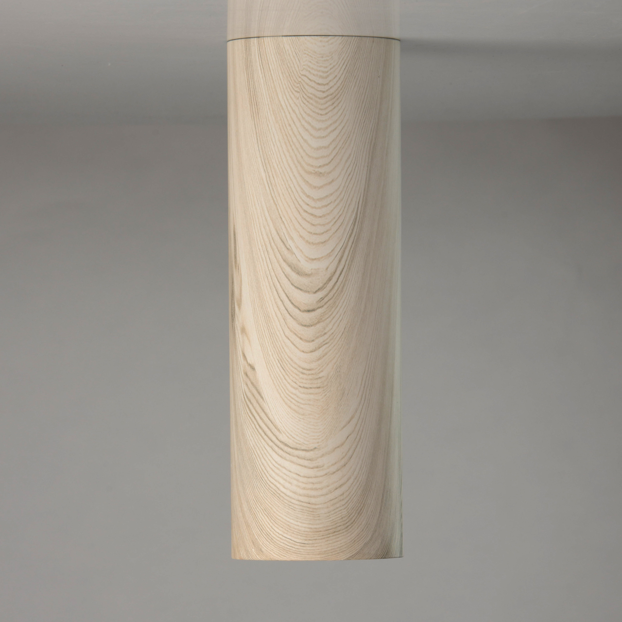 Основание светильника выполнено из металла, рисунок структуры белого дуба нанесён по технологии плёночного окрашивания. Светодиодный источник света типа COB закрыт рассеивателем из белого матового акрила.