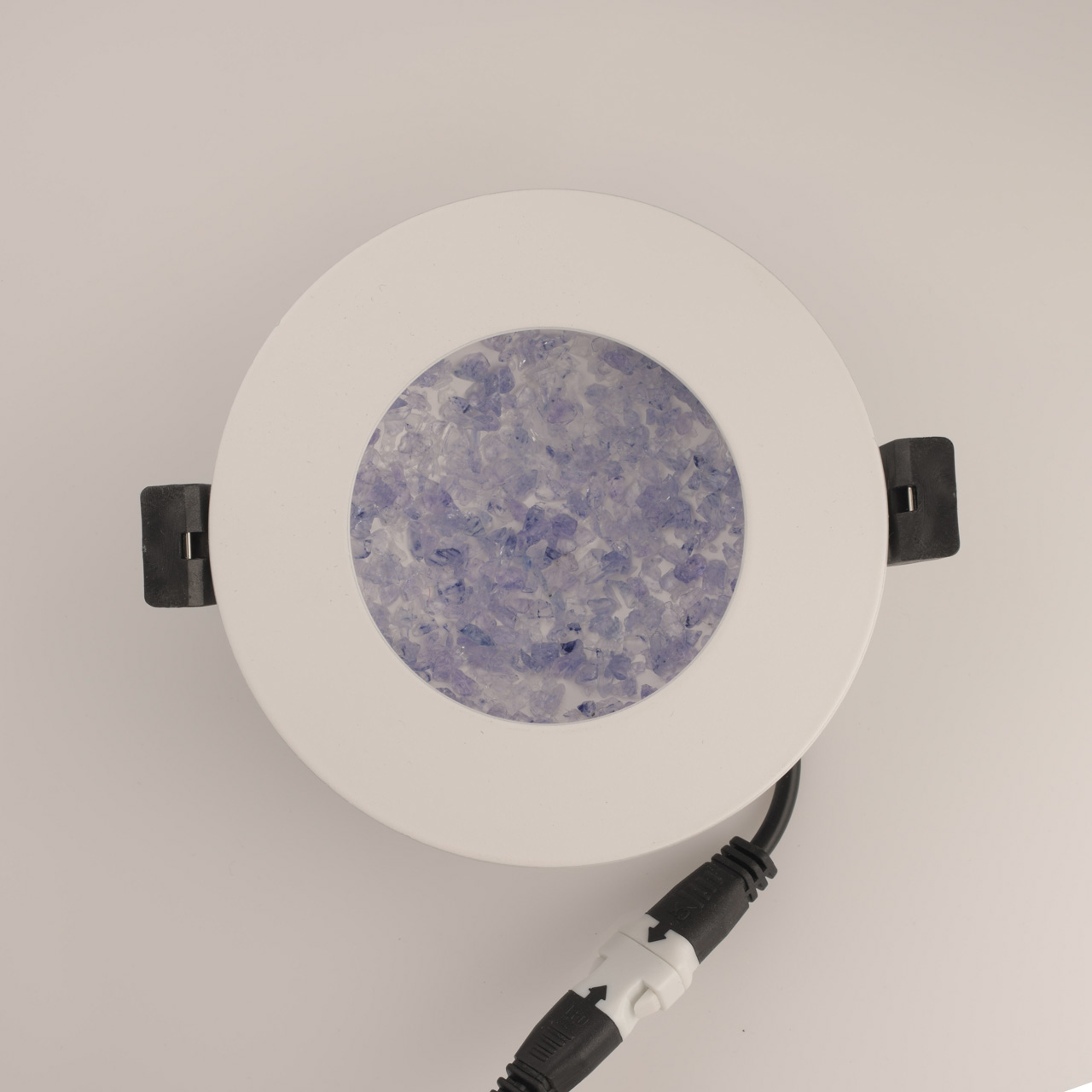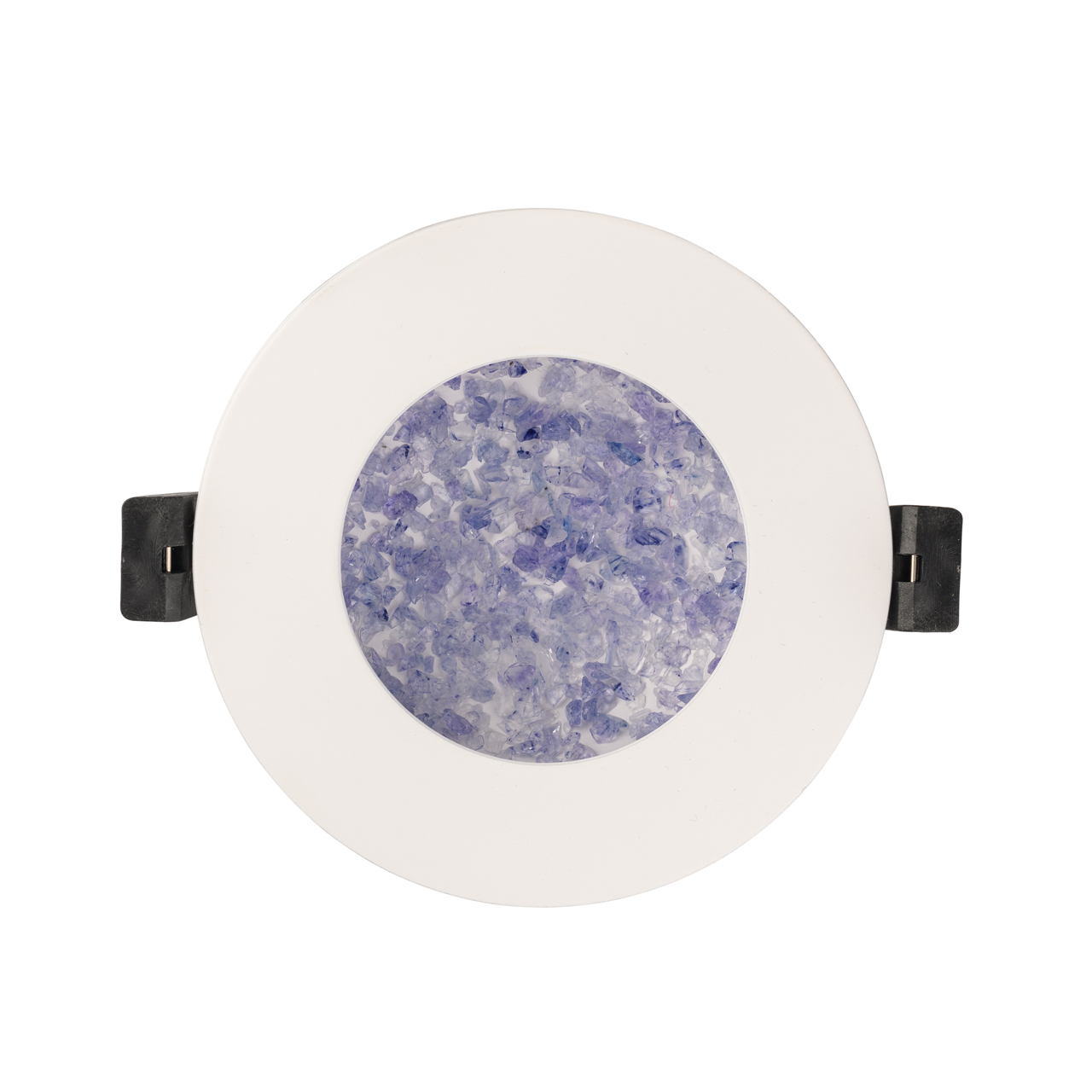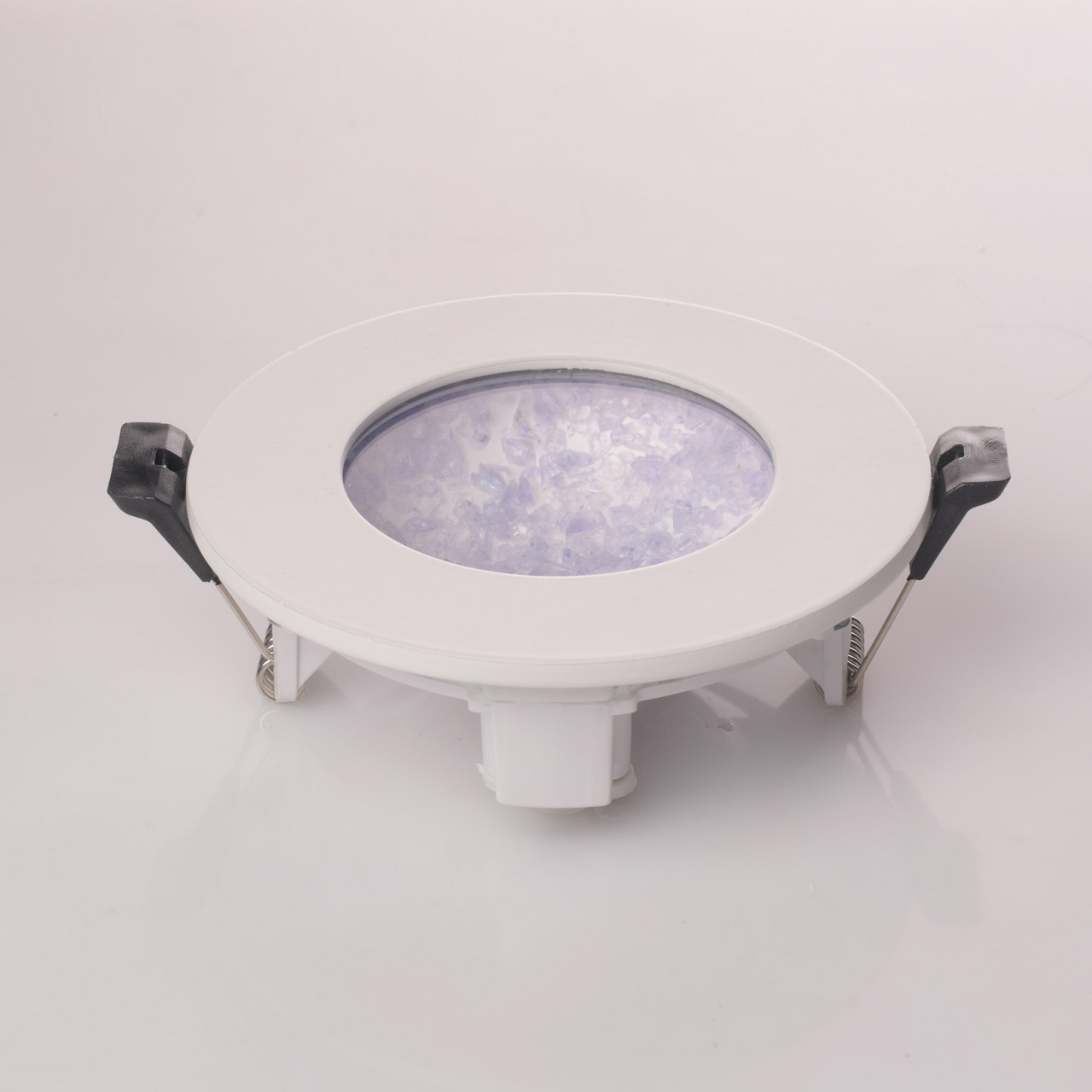 Основание светильника выполнено из сплава алюминия и окрашено в белый цвет.Светодиодные источники света типа SMD Strip закрыты прозрачным стеклом. Цветная стеклянная крошка.